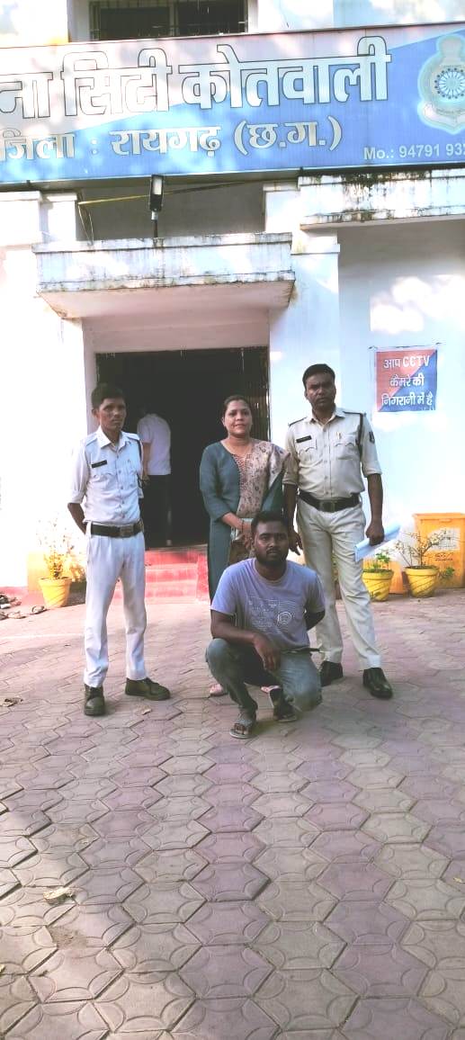 10 अक्टूबर, रायगढ़। कल दिनांक 09.10.2024 को थाना कोतवाली में एक युवती द्वारा दुष्कर्म की रिपोर्ट दर्ज कराई गई। रिपोर्ट के आधार पर कोतवाली पुलिस ने आरोपी दुर्गा प्रसाद किसान (26 साल) , निवासी बोंदाटिकरा जुटमिल, को गिरफ्तार कर रिमांड पर पेश कर जेल दाखिल किया गया है।
