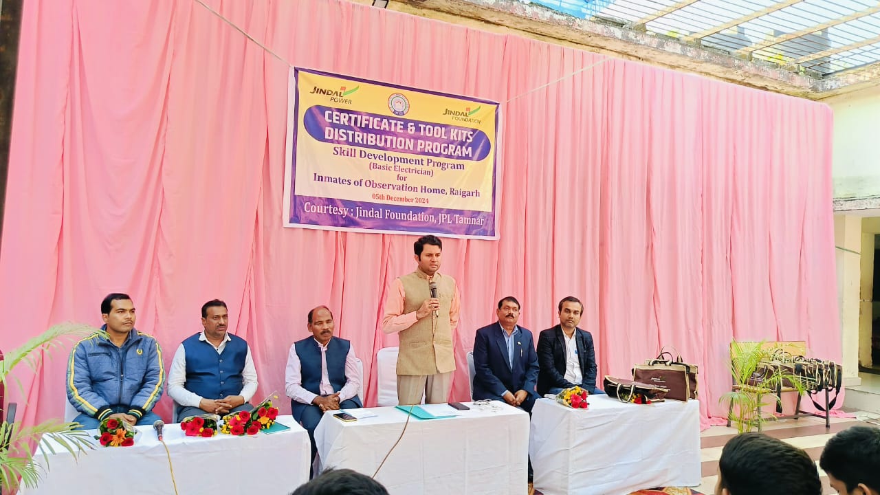 कार्यक्रम को प्रथमतया सम्बोधित करते हुए ऋषिकेश शर्मा ने कहा कि जिंदल फाउण्डेशन, जेपीएल तमनार सदैव क्षेत्र के सर्वांगीण विकास के लिए प्रतिबद्ध रही है। इसी क्रम में किशोर सुधार गृह रायगढ़ में विधि से संघर्षरत बालकों के लिए 02 महीने का बेसिक इलेक्ट्रीशियन प्रशिक्षण कार्यक्रम के पृष्ठभूमि पर विस्तृत प्रकाश डालते हुए जिला रायगढ़ के युवा कलेक्टर श्री कार्तिकेय गोयल के प्रेरणास्त्रोत उपस्थिति में सम्पन्न हो रहा है। उन्होनें ने जिला कलेक्टर रायगढ़ को भारी व्यस्तता के बावजूद पर्यापत समय प्रदान करने के लिए आभार ज्ञापित किया।