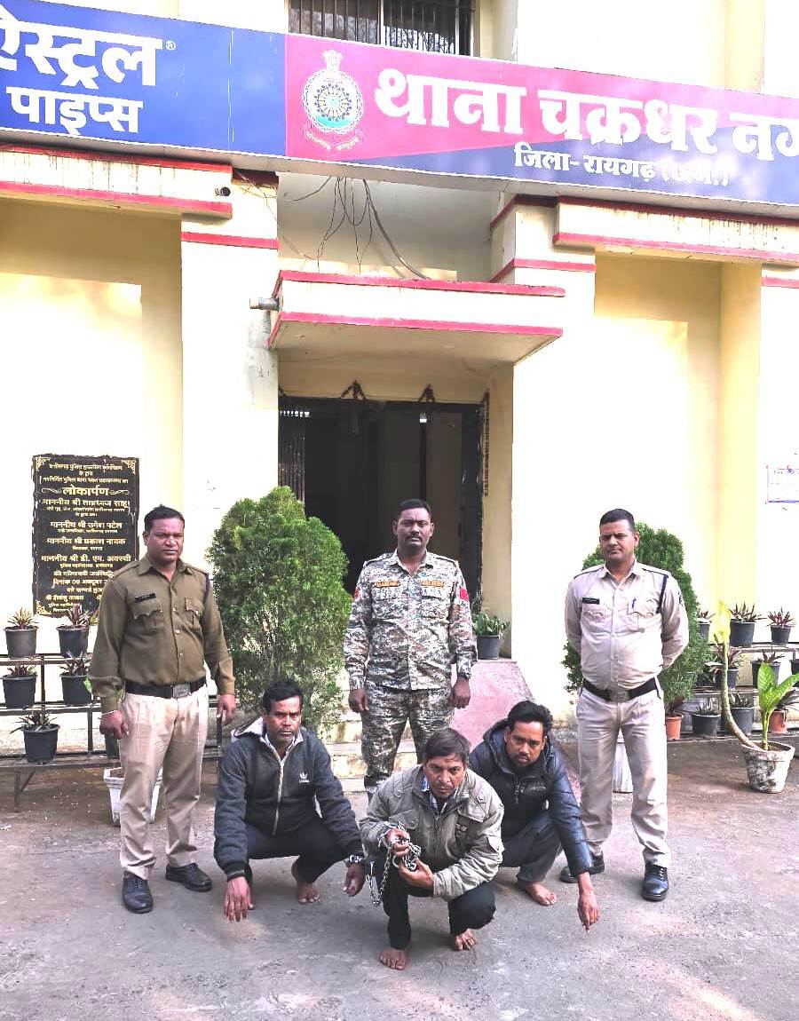 23 दिसंबर, रायगढ़। चक्रधरनगर थाना क्षेत्र के ग्राम डूमरपाली में 50 वर्षीय पंचराम सारथी की मौत के मामले में पुलिस ने त्वरित कार्रवाई करते हुए मुख्य आरोपी वीरेंद्र सिंह सिदार और उसके पड़ोसी अजय प्रधान तथा अशोक प्रधान को गिरफ्तार कर लिया है। पुलिस अधीक्षक दिव्यांग कुमार पटेल के दिशा-निर्देशन में हत्या के इस प्रकरण की गहनता से जांच की जा रही है।