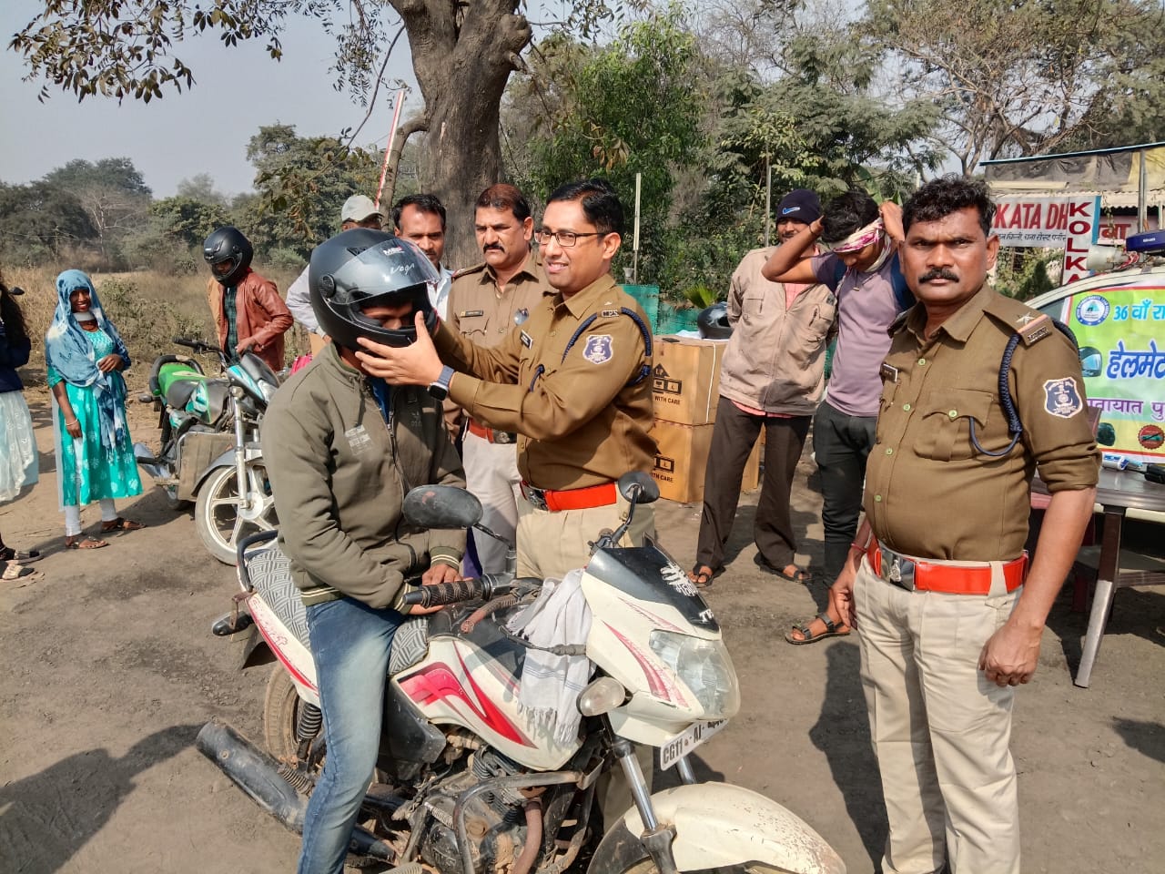 05 जनवरी, रायगढ़ । राष्ट्रीय सड़क सुरक्षा माह 2025 के तहत *ग्राम जोरापाली* में यातायात पुलिस ने बिना हेलमेट दोपहिया वाहन चला रहे वाहन चालकों के खिलाफ *मोटर व्हीकल एक्ट* के तहत कार्यवाही की और उन्हें *निशुल्क हेलमेट* वितरित किए।