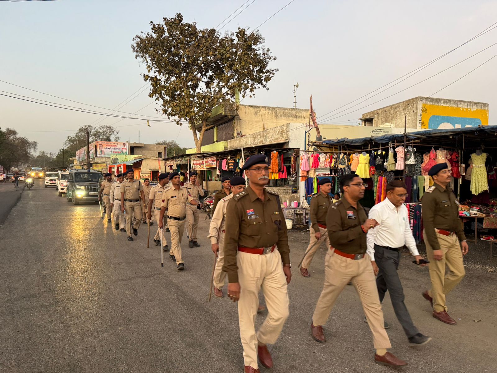 जिला मुख्यालय में पुलिस अधीक्षक दिव्यांग पटेल के नेतृत्व में पुलिस कंट्रोल रूम से फ्लैग मार्च निकाला गया, जिसमें नगर पुलिस अधीक्षक आकाश शुक्ला, प्रशिक्षु आईपीएस हर्षित मेहर, डीएसपी ट्रैफिक उत्तम सिंह, नगर निरीक्षक और थाना बल शामिल रहा। पैदल पेट्रोलिंग के जरिए पुलिस बल ने पूरे शहर में भ्रमण कर आमजन को आश्वस्त किया कि वे निर्भीक होकर मतदान करें और किसी भी तरह के डर या प्रभाव में न आएं।