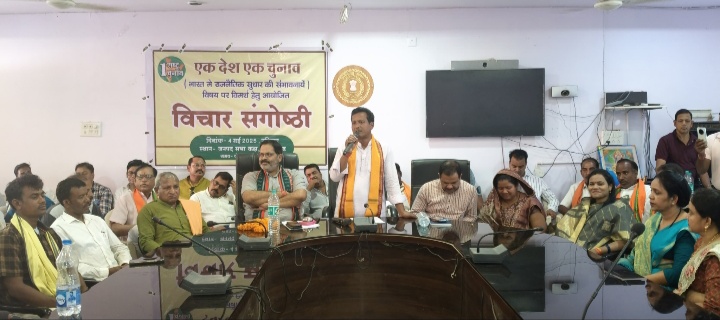एक राष्ट्र एक चुनाव नीतिगत निष्क्रियता को रोकता है और शासन पर ध्यान केंद्रित बढ़ाता है।एक साथ चुनाव कराने से सरकारी खजाने पर वित्तीय बोझ कम होगा, क्योंकि इससे बीच-बीच में होने वाले चुनावों पर होने वाले व्यय का दोहराव नहीं होगा। जिला भाजपा अध्यक्ष अरूणधर दीवान ने कहा एक राष्ट्र एक चुनाव के कार्यान्वयन से दुर्लभ संसाधनों का अनुकूलतम उपयोग, पूंजी निवेश में वृद्धि और परिसंपत्ति सृजन होगा। एक राष्ट्र एक चुनाव चुनावी कैलेंडर को समन्वित करता है, जिससे शासन के लिए अधिक समय की उपलब्धता सुनिश्चित होगी तथा नागरिकों को निर्बाध सार्वजनिक सेवा प्रदान की जा सकेगी। एक राष्ट्र एक चुनाव से चुनाव संबंधी विवाद और अपराध को रोका जा सकेगा। जिससे अदालतों पर बोझ कम होगा। एक राष्ट्र एक चुनाव से प्रयासों का दोहराव टाला जा सकेगा तथा राजनीतिक कार्यकर्ताओं, सरकारी अधिकारियों और सुरक्षा बलों का समय और ऊर्जा बचेगी। एक राष्ट्र एक चुनाव से चुनावों के दौरान अक्सर होने वाली सामाजिक असामंजस्यता और संघर्ष में कमी आएगी। इस दौरान रत्थू गुप्ता जिला मंत्री भाजपा, लीनव राठिया जनपद अध्यक्ष,अनिल सरकार नगर पंचायत अध्यक्ष, रजनी राठिया जिला पंचायत सदस्य,टीका राम पटेल प्रदेश उपाध्यक्ष किसान मोर्चा,तारा सिंह राठिया पुर्व आयोग अध्यक्ष,भरत साहू अध्यक्ष धर्मजयगढ़ मंडल, डोलनरायण पटेल अध्यक्ष छाल मंडल, नीरज शर्मा0अध्यक्ष कापु मंडल, दशरथ राठिया अध्यक्ष, बाकारुमा मंडल, गोकुल यादव,विनय शर्मा,संजय गुप्ता पूर्व मंडल अध्यक्ष,आयोजन से जुड़ी गायत्री केसरवानी, शशि पटेल सहित कार्यकर्ताओ गणमान्य नागरिकों की मौजूदगी रही।