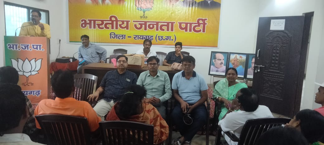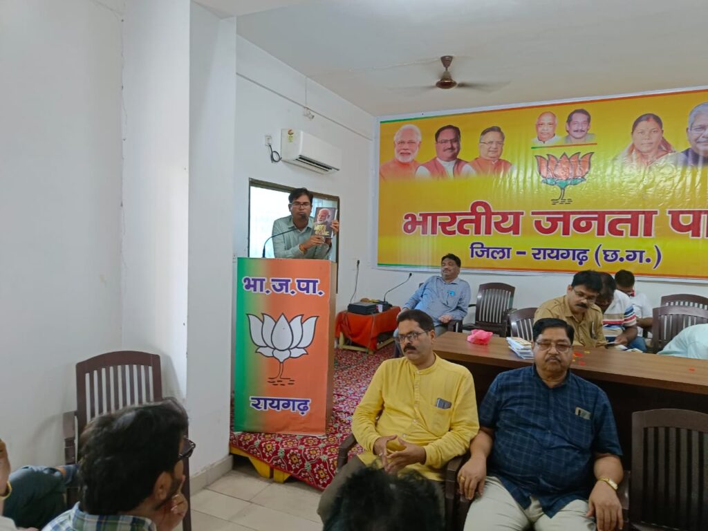 रायगढ-जिला भाजपा कार्यालय में आज जिला भाजपा की आवश्यक बैठक आहूत की गई जिसमें आगामी 21 अगस्त को होने वाले मोदी @ 20 सेमिनार की रूपरेखा तय की गई एवं जवाबदार कार्यकर्ताओं को जवाबदारी सौंपी गई।बैठक की प्रस्तावना रखते हुए जिला भाजपा के महामंत्री अरुणधर दीवान ने रखी एवं प्रदेश भाजपा द्वारा तय निर्देशों को कार्यकर्ताओं को बताया ,बैठक को संबोधित करते हुए जिला भाजपा के अध्यक्ष उमेश अग्रवाल ने कहा कि हमारे देश के यशस्वी प्रधानमंत्री नरेंद्र मोदी जी ने इस 20 वर्षों में क्या क्या कार्य किए है उसको लेकर देश के कई बुद्धिजीवियों ने अपने विचार मोदी @ 20 किताब में लिखे हैं।इसी विषय को लेकर आगामी 21 अगस्त को हमारे जिले को एक सेमिनार कराने की जवाबदारी पूरी करनी है जिसमे जिले के सभी क्षेत्र के बुद्धिजीवियों को ससम्मान आमंत्रित करना है।यह कार्यक्रम नगर निगम आडिटोरियम ,रायगढ में दोपहर 1.30बजे
