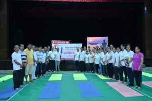 अंतर्राष्ट्रीय योग दिवस का शुभारंभ योग प्रार्थना के साथ किया गया। इसके पश्चात् योग के विस्तृत स्वरूप एवं विश्व योगा दिवस मनाने एवं इसमें भारतवर्ष के योगदान के पृष्ठभूमि पर प्रकाश डाला गया। इसके पश्चात् योगाभ्यास का प्रारंभ शिथिलीकरण अभ्यास के साथ किया गया। इस अवसर पर योगासन के विभिन्न स्वरूप जैसे- ताड़ासन, वृक्षासन, पादहस्तासन, त्रिकोणासन, भद्रासन, वक्रासन, भुंजगासन, कपालभाति, भ्रामरी, उत्तानपादासन, पवनमुक्तासन एवं विभिन्न प्राणायामों के बारे में योगाभ्यास