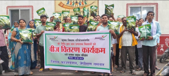 तमनार-जिंदल फाउंडेशन, जेपीएल तमनार द्वारा कृषि क्षेत्र में नवाचार और किसानों के सर्वांगीण विकास सुनिश्चित करने के लिए गारे पालमा माइंस परिक्षेत्र कार्यालय टपरंगा में ’श्री’ मेडागास्कर विधि द्वारा धान उत्पादक 60 किसानों को बीज वितरण किया गया। कार्यक्रम का उद्देश्य किसानों को उन्नत किस्म के बीज उपलब्ध कराकर उनकी पैदावार में वृद्धि करना और कृषि लागत को कम करना प्रमुख है।