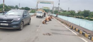 पिछले कुछ हफ्तों से शहर की प्रमुख सड़कों पर आवारा गायें, बैल और सांडों का जमावड़ा देखा जा रहा है। ट्रैफिक बाधित, वाहन चालकों की जान जोखिम में है लेकिन नगर निगम को इसकी कोई परवाह नही है। बाइक चालक के साथ स्कूल बस को