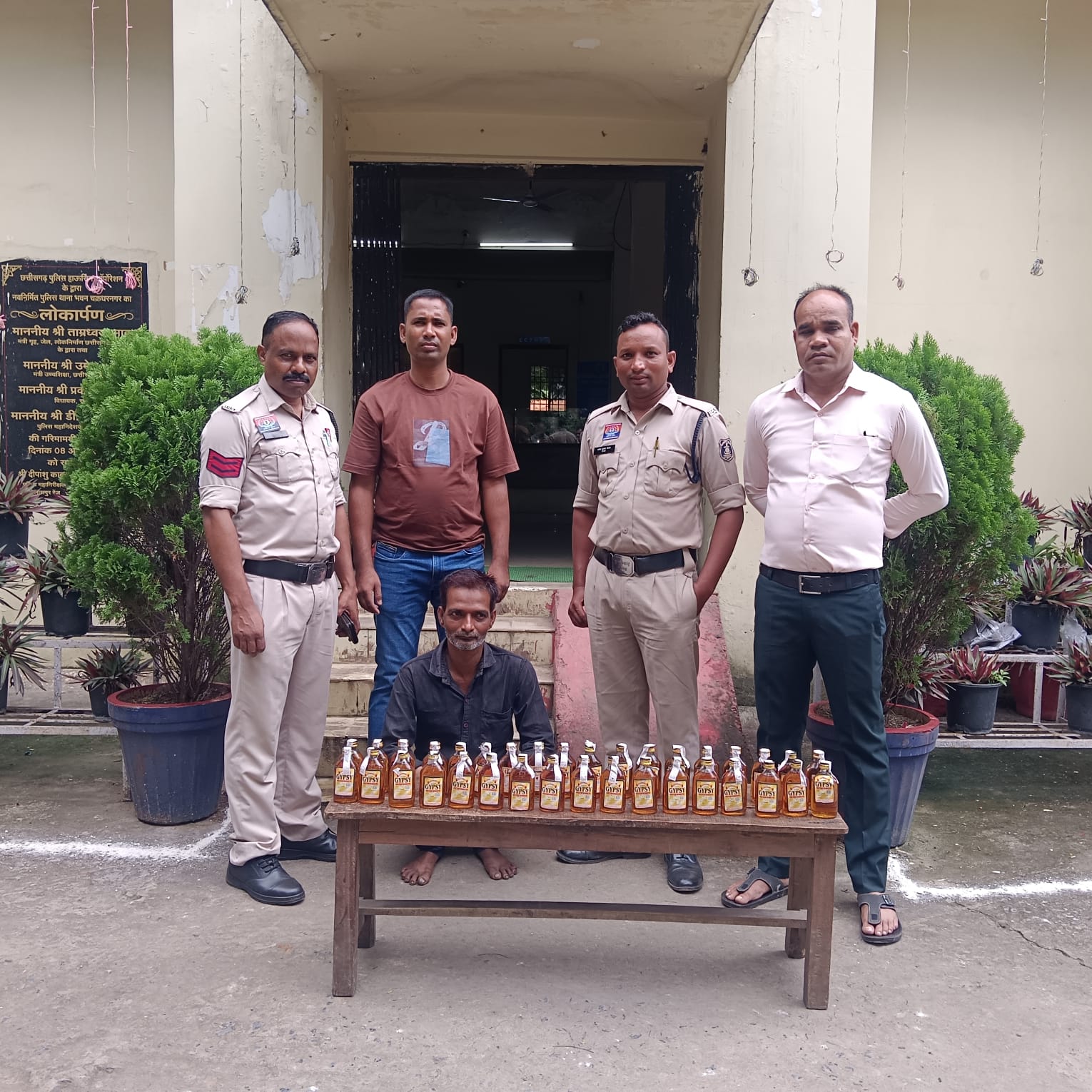 देकर अंग्रेजी शराब की अवैध बिक्री कर रहे एक आरोपी को रंगेहाथ पकड़ा। थाना प्रभारी को मुखबिर से सूचना मिली थी कि कोलाईबहाल निवासी रिजवान कौसर अवैध रूप से अंग्रेजी शराब संग्रहित कर ग्राहकों की तलाश कर रहा है। सूचना की पुष्टि पर तत्काल पुलिस दल मौके पर पहुंचा और रेड कार्रवाई की, जहां आरोपी रिजवान कौसर पिता स्व. मोहम्मद मुश्ताक (49 वर्ष) निवासी कोलाईबहाल, जामगांव थाना चक्रधरनगर मिला। पूछताछ में उसने बिक्री हेतु अंग्रेजी शराब रखने की बात स्वीकार की और अपने पास से 35 पाव अंग्रेजी शराब, जिसकी अनुमानित कीमत 4,200 रुपये है, बरामद कर दी। पुलिस ने गवाहों की मौजूदगी में शराब को जप्त कर आरोपी के विरुद्ध थाना चक्रधरनगर में धारा 34(2), 59-क आबकारी एक्ट के तहत मामला दर्ज कर कार्रवाई की। थाना प्रभारी चक्रधरनगर निरीक्षक अमित शुक्ला के नेतृत्व में इस कार्रवाई में प्रधान आरक्षक पैलुस एक्का, आरक्षक शांति मिरी और चंद्र कुमार बंजारे की सराहनीय भूमिका रही।
