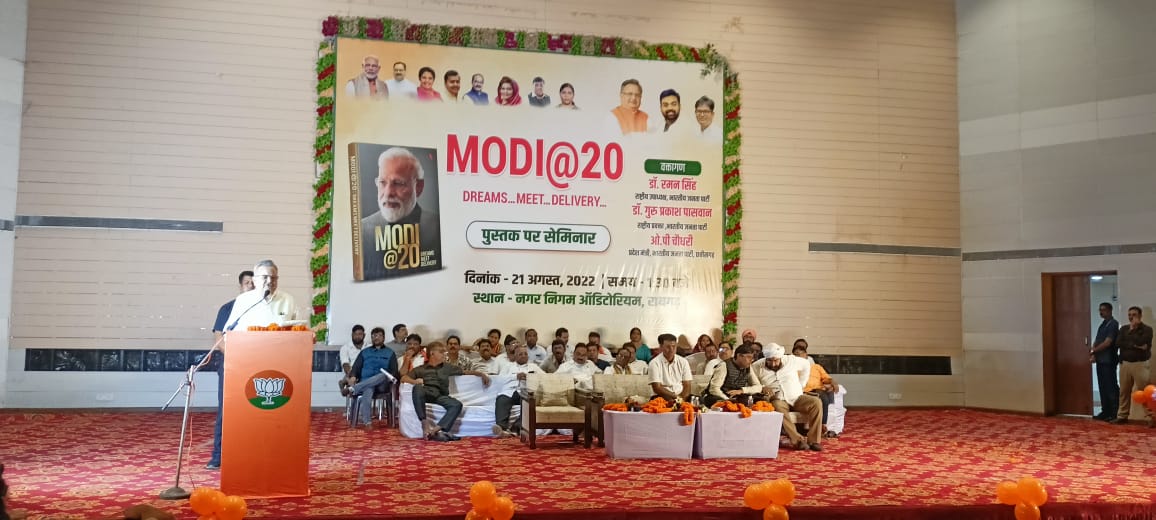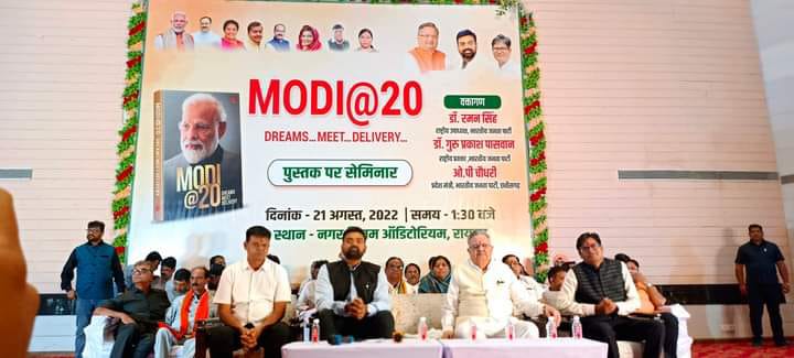 सहमत होंगे , सबका साथ,सबका विकास एवं सबका विश्वास की मूल भावना से हमारे देश के प्रधान सेवक कार्य कर रहें है।यह सोचकर भी अचंभा होता है कि देश को 75 वर्ष लग गए एक आदिवासी महिला को देश के सर्वोच्च पद तक पहुचाने में ,यह पिछली सरकारों की तुष्टिकरण राजनीति का ही दुष्परिणाम था जो यह नही हो पाया परन्तु अब ऐसा नही है देश की कमान ऐसे सशक्त योद्धा के पास है जो तुष्टिकरण से तृप्तिकरण की ओर राजनीति एवं देश को।ले जा रहें है।तुष्टिकरण रूपी कैंसर ने देश को खोखला बना डाला था जिसे अपने दृढ़ इच्छा शक्ति से मोदी जी तृप्तिकरण की ओर ले जा रहे हैं।यह मोदी जी की।दूरदर्शिता का ही परिणाम है कि आज देश के सर्वोच्च संवैधानिक पद पर एक आदिवासी महिला आसीन है।देश को आर्थिक छुवाछुत से निकालने की दिशा में उन्होंने 45 करोड़ नए बैंक खाते खोले जिसकी उपयोगिता कोरोना जैसे भयंकर महामारी के काल मे हमे समझ आई।कोविड महामारी की भयंकर विभीषिका को भला कौन भूल सकता है,यह एक ऐसा विषम समय था जब चारों ओर अंधेरा ही नजर आ रहा था परंतु एक पालक की भांति हम सभी देशवासियों को उस भयंकर अवसाद से निकालने के लिए देश के प्रधामनंत्री ने प्रधानसेवक की भांति कार्य किया।परिवारवाद को देश का सबसे बड़ा दुर्भाग्य मानते हुए पासवान जी ने कहा कि हमारे विरोधी हमारे ऊपर भी यह मिथ्या आरोप लगाते रहे हैं लेकिन मैं दावे के साथ कह सकता हूँ कि जनसंघ से लेकर भाजपा तक आप बता दीजिए कि हमारे यहाँ कौन पिता पुत्र देश का राष्ट्रीय अध्यक्ष बना हो,यही बात प्रदेश संगठन पर भी बता दीजिए ,बिहार के वर्तमान सरकार पर कटाक्ष करते हुए उन्होंने कहा कि परिवारवाद,तुष्टिकरण एवं मजबूर सरकार का असल रूप कहीं देखना है तो वो बिहार में आकर देख सकते है,हम सभी ने यह ठाना है कि परिवारवाद एवं भ्रष्टाचार को इस देश समाप्त करकर ही दम लेंगे।छतीसगढ़ महतारी की लगातार 15 वर्षों तक पूरे मनोयोग से सेवा करने वाले प्रदेश के पूर्व मुख्यमंत्री डॉ रमन सिंह को उध्बोधन में जब आमन्त्रित किया गया तो पूरा सभा स्थल तालियों की गड़गड़ाहट से गुंजायमान हो उठा,ऐसा प्रतीत हो रहा था कि वहां बैठा हर शख्स तालियों के माध्यम से अपने नेता का अभिवादन करने को आतुर है।मोदी@20 किताब के विषय मे आयोजित सेमिनार में आना और आप जैसे श्रेष्ठ श्रोताओं के समक्ष इस विषय मे बोलना मेरे लिए बड़े ही सौभाग्य का विषय है।प्रदेश की जनता जनार्दन ने मुझे इस राज्य की सेवा करने का जो अवसर प्रदान किया था ऐसे समय मे मुझे भी मोदी जी की जनकल्याण कारी योजनाओं को धरातल में उतारकर प्रदेश के अंतिम व्यक्ति तक इस योजना का लाभ पहुचाने में जो सुखद अनुभव प्राप्त हुवा था वो मेरे जीवन का एक आनंदित अध्याय है।मोदी जी की जनकल्याण कारी योजनाओं के बारे में यदि मुझे भी 