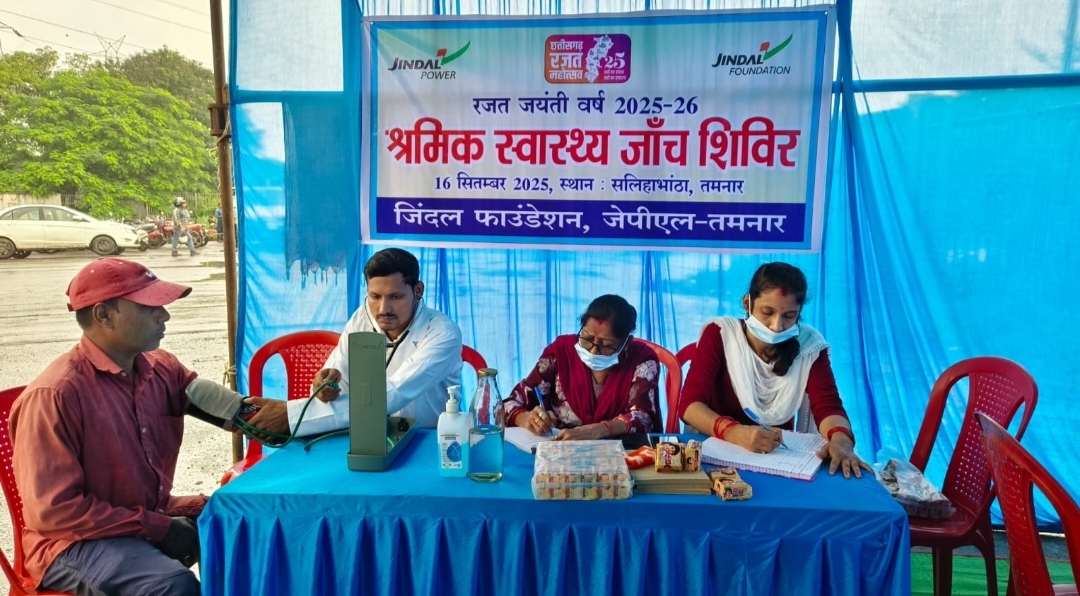 तमनार। जिंदल पावर लिमिटेड तमनार भारतवर्ष का एक अग्रणी ऊर्जा उत्पादक संस्थान होने के साथ साथ जनतिहैषी संस्थान भी है। संस्था क्षेत्र के सर्वांगीण विकास के लिए सदैव समर्पित रही है। विशेषकर शिक्षा, स्वास्थ्य व पर्यावरणीय बेहतर वातावरण निर्माण में सदैव बढ़ चढ़कर भाग लेती रही है तथा शासन के प्रत्येक योजनाओं में अपनी भूमिका का निर्वहन करती रही है। इसी क्रम में संस्थान अपने सामाजिक सरोकार निर्वहन अंतर्गत संस्थान में कार्यरत स्थानीय व अन्य राज्यों से आये श्रमिकों एवं उनके परिवारजनों के लिए बेहतर स्वास्थ्य उपलब्धता हेतु एक दिवसीय श्रमिक चिकित्सा शिविर का आयोजन सीएसआर हेल्थ संेटर में किया गया। शिविर में ओ.पी. जिंदल हास्पिटल सावित्रीनगर तमनार के वरिष्ठ विशेषज्ञ चिकित्सकों द्वारा 146 जनरल चिकित्सा, हाई ब्लड प्रेसर, शुगर, एनेमिक एचबी टेस्ट, दांत खाज खुजली एवं लाक्षणिक चिकित्सा के मरीजो का चिकित्कीय उपचार कर उन्हें आवश्यक दवाईयाॅ प्रदान की गई।