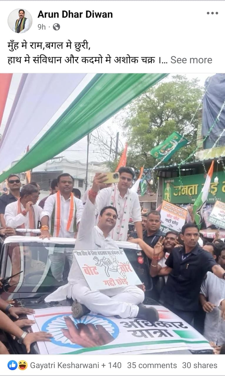 “कांग्रेस का असली चेहरा अब जनता के सामने उजागर हो चुका है। मुँह में राम, बगल में छुरी और हाथ में संविधान का नारा लगाने वाले लोग, असलियत में उसी संविधान के प्रतीक अशोक चक्र को पैरों तले रौंद रहे हैं। यह कृत्य अक्षम्य अपराध है।”