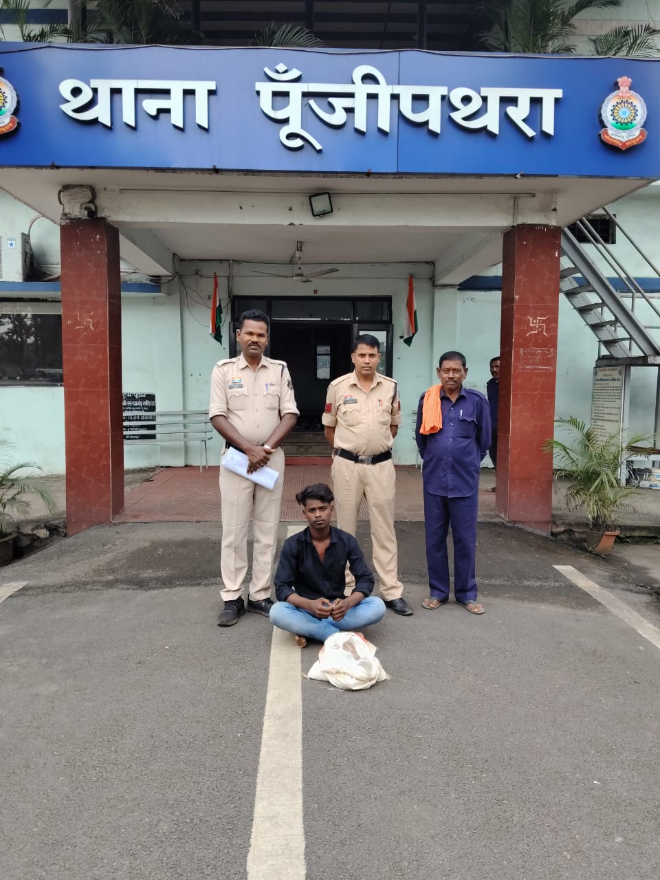 रायगढ़, 30 सितंबर । कल दिनांक 29 सितंबर 2025 को पूंजीपथरा पुलिस देहात माइनर एक्ट की कार्यवाही के दौरान ग्राम छर्राटांगर डोकरबुडा राबो की ओर रवाना हुई थी। इसी दरम्यान मुखबिर सूचना मिली कि ग्राम बैहामुडा थाना घरघोड़ा का गजेन्द्र सारथी अवैध रूप से कच्ची शराब ग्राम राबो में जिंदल स्कूल के पास रख रहा हुआ है।