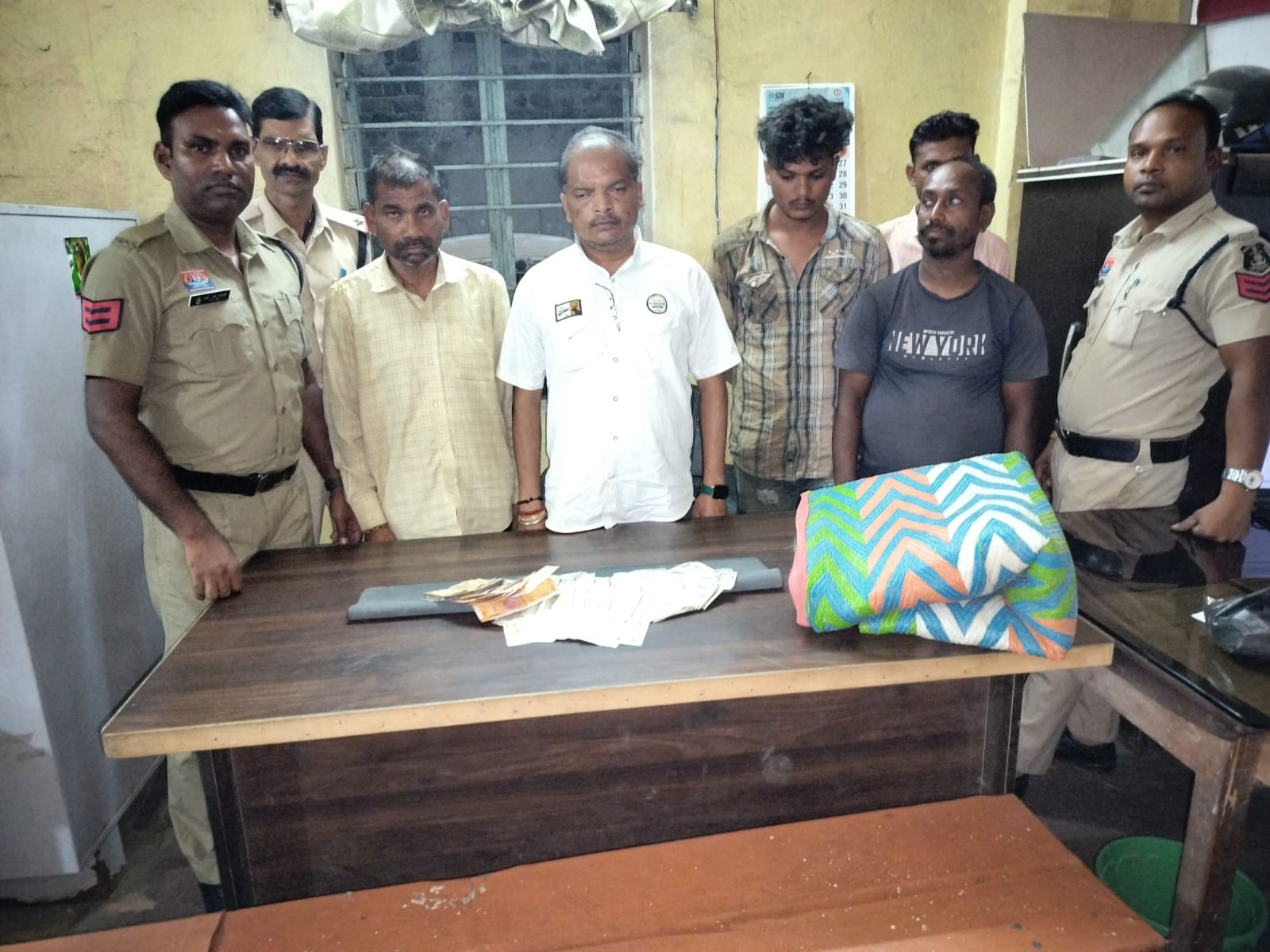 जानकारी के अनुसार, 14 अक्टूबर की शाम थाना प्रभारी जूटमिल निरीक्षक प्रशांत राव को मुखबिर से सूचना मिली कि ग्राम सांगीतराई डीपापारा आम रोड के किनारे कुछ लोग ताश पत्तियों से रुपये-पैसे का दांव लगाकर सार्वजनिक स्थान पर जुआ खेल रहे हैं। सूचना पर जूटमिल पुलिस टीम ने योजनाबद्ध तरीके से घेराबंदी कर रेड की कार्रवाई की, जिसमें पांच जुआरी पकड़े गए—(1) दिवाकर वैष्णव पिता कृष्णदास वैष्णव उम्र 33 वर्ष निवासी छातामुड़ा नाका, (2) मानस कर्मकार पिता स्व. सपन कर्मकार उम्र 47 वर्ष निवासी कबीर चौक, (3) जितेन्द्र कुमार माली पिता स्व. भृगु माली उम्र 35 वर्ष निवासी फटहामुड़ा, (4) आकाश महंत पिता रमेश महंत उम्र 22 वर्ष निवासी सांगीतराई महंतपारा, और (5) राजेश मांझी पिता स्व. चंद्रिका मांझी उम्र 42 वर्ष निवासी एफसीआई गोदाम रावण आटो के पास थाना जूटमिल।