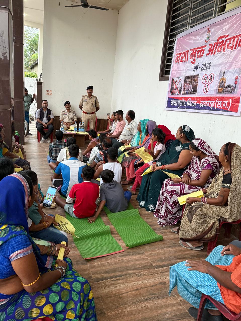रायगढ़, 24 अक्टूबर । पुलिस अधीक्षक दिव्यांग पटेल के दिशा निर्देशन एवं नगर पुलिस अधीक्षक मयंक मिश्रा के मार्गदर्शन पर पुसौर थाना क्षेत्र में आज दिनांक 24 अक्टूबर 2025 को थाना प्रभारी निरीक्षक रामकिंकर यादव के नेतृत्व में ग्राम टपरदा में साइबर जागरूकता, नशा मुक्ति और सुरक्षित यातायात पर आधारित विशेष जागरूकता कार्यक्रम का आयोजन किया गया। कार्यक्रम में थाना प्रभारी रामकिंकर यादव एवं एएसआई उमाशंकर विश्वाल ने ग्रामीणों को जागरूक करते हुए कहा कि बदलते समय में साइबर अपराधों का तरीका भी अत्याधुनिक होता जा रहा है, ऐसे में अजनबी लिंक, ओटीपी, बैंक कॉल या सोशल मीडिया पर साझा की गई निजी जानकारी का दुरुपयोग कर ठगी की जा रही है। उन्होंने ग्रामीणों से सावधानी बरतने और किसी भी संदिग्ध कॉल या लिंक पर क्लिक न करने की अपील की।