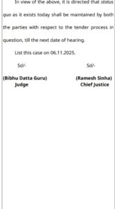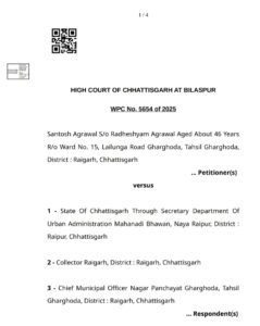 दरअसल नगर पंचायत घरघोड़ा में 7.10. 2025 को निविदा आमंत्रण की सूचना जारी की गई थी, जिस पर निविदा भरने की अंतिम तिथि 30.10.2025 तक थी। जिस पर आज माननीय उच्च न्यायालय छत्तीसगढ़ ने सुनवाई करते हुए प्रक्रिया पर रोक लगा दी है । नगर पंचायत घरघोड़ा द्वारा अधोसंरचना व 15 वे वित्त मद से जारी निविदा में कई कार्यो को संतोष अग्रवाल के पक्ष में कार्यादेश जारी किया गया था, जिनमें से अधिकांश कार्य उनके द्वारा पूर्ण कर लिए गए थे किंतु उस संबंध में मुख्य