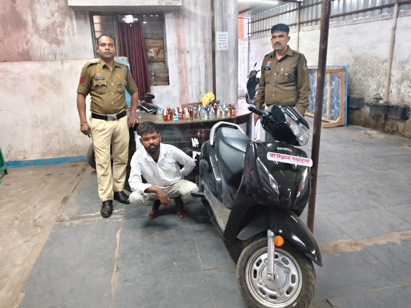 घेराबंदी के दौरान पुलिस दल को मुखबिर के बताए अनुसार काले रंग की एक्टिवा स्कूटी आती दिखाई दी। रोककर पूछताछ करने पर आरोपी ने अपना नाम सतीश दास महंत पिता प्रकाश दास महंत, उम्र 29 वर्ष, निवासी वार्ड क्रमांक 32 जूटमिल थाना क्षेत्र जूटमिल रायगढ़ बताया। तलाशी के दौरान उसकी एक्टिवा स्कूटी क्रमांक CG 13 BJ 7334 के डिक्की से 21 पाव देशी मसाला शराब और 11 पाव देशी प्लेन शराब, कुल 32 पाव शराब बरामद की गई, जिसकी कीमत 2980 रुपये है। साथ ही परिवहन में प्रयुक्त स्कूटी जिसकी कीमत लगभग 70 हजार रुपये है, उसे भी जब्त कर पुलिस कब्जे में लिया गया।