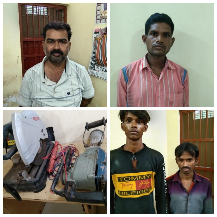 आरोपियों से सरिया कटिंग मशीन, 3 मोटर पम्प और वेल्डिंग, वाईब्रेटर मशीन, जप्त…..