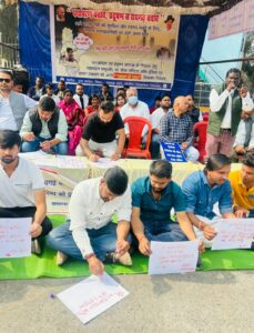 रायगढ़। औद्योगिक प्रदूषण से कराहते रायगढ़ और दम तोड़ते जनस्वास्थ्य के खिलाफ आज युवा कांग्रेस ने ऐसा विरोध दर्ज कराया, जिसने शासन-प्रशासन की संवेदनहीनता को आईना दिखा दिया। युवा कांग्रेस जिला रायगढ़ शहर अध्यक्ष श्री आशीष जायसवाल के नेतृत्व में युवा कांग्रेस नेताओं व कार्यकर्ताओं ने महात्मा गांधी की प्रतिमा के समक्ष अपने खून से पत्र लिखकर सरकार और प्रशासन को चेतावनी दी।