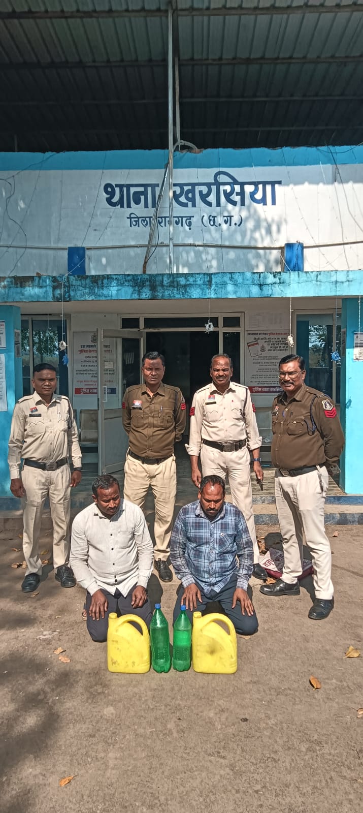 खरसिया थाना पुलिस को मुखबिर से सूचना मिली कि एक व्यक्ति ग्राम कोडाभाठा गीधा क्षेत्र में अवैध रूप से कच्ची महुआ शराब परिवहन कर रहा है। सूचना पर पुलिस टीम ने गवाहों को नोटिस देकर मौके पर पहुंचकर रेड कार्रवाई की, जहां आरोपी *शिव प्रसाद डनसेना पिता तीजराम डनसेना उम्र 38 वर्ष निवासी कोडाभाठा गीधा* को पकड़ा गया। आरोपी के कब्जे से कुल 7 लीटर कच्ची महुआ शराब कीमती 1,400 रुपये बरामद कर जब्त किया गया। इसी तरह ग्राम गीधा नहरपार में *तिरथराम डनसेना पिता स्व. डमरूधर डनसेना उम्र 36 वर्ष* के कब्जे से 7 लीटर महुआ शराब कीमती 1,400 रुपये जब्त कर आरोपी को गिरफ्तार किया गया। दोनों मामलों में आरोपियों के विरुद्ध धारा 34(2), 59(क) आबकारी एक्ट के तहत अपराध दर्ज कर विवेचना में लिया गया है।