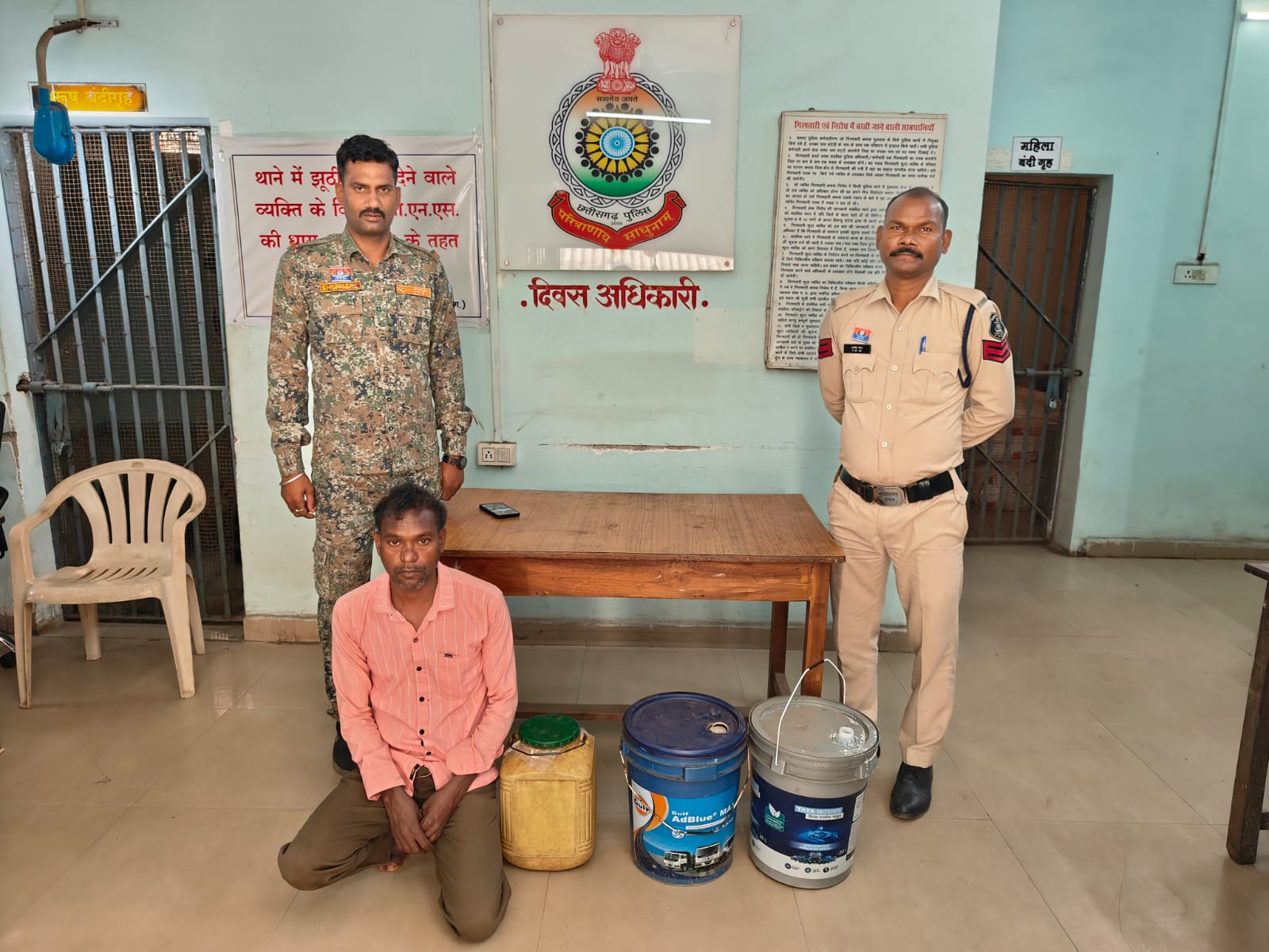 थाना धरमजयगढ़ क्षेत्र में* कार्रवाई के दौरान पतरापारा वार्ड क्रमांक 08 निवासी आरोपी कविता सिंह पति दारा सिंह उम्र 35 वर्ष के कब्जे से चार प्लास्टिक जरीकेन में 20 लीटर एवं एक जरीकेन में 05 लीटर सहित कुल 25 लीटर कच्ची महुआ शराब कीमती ₹2500 जब्त की गई।