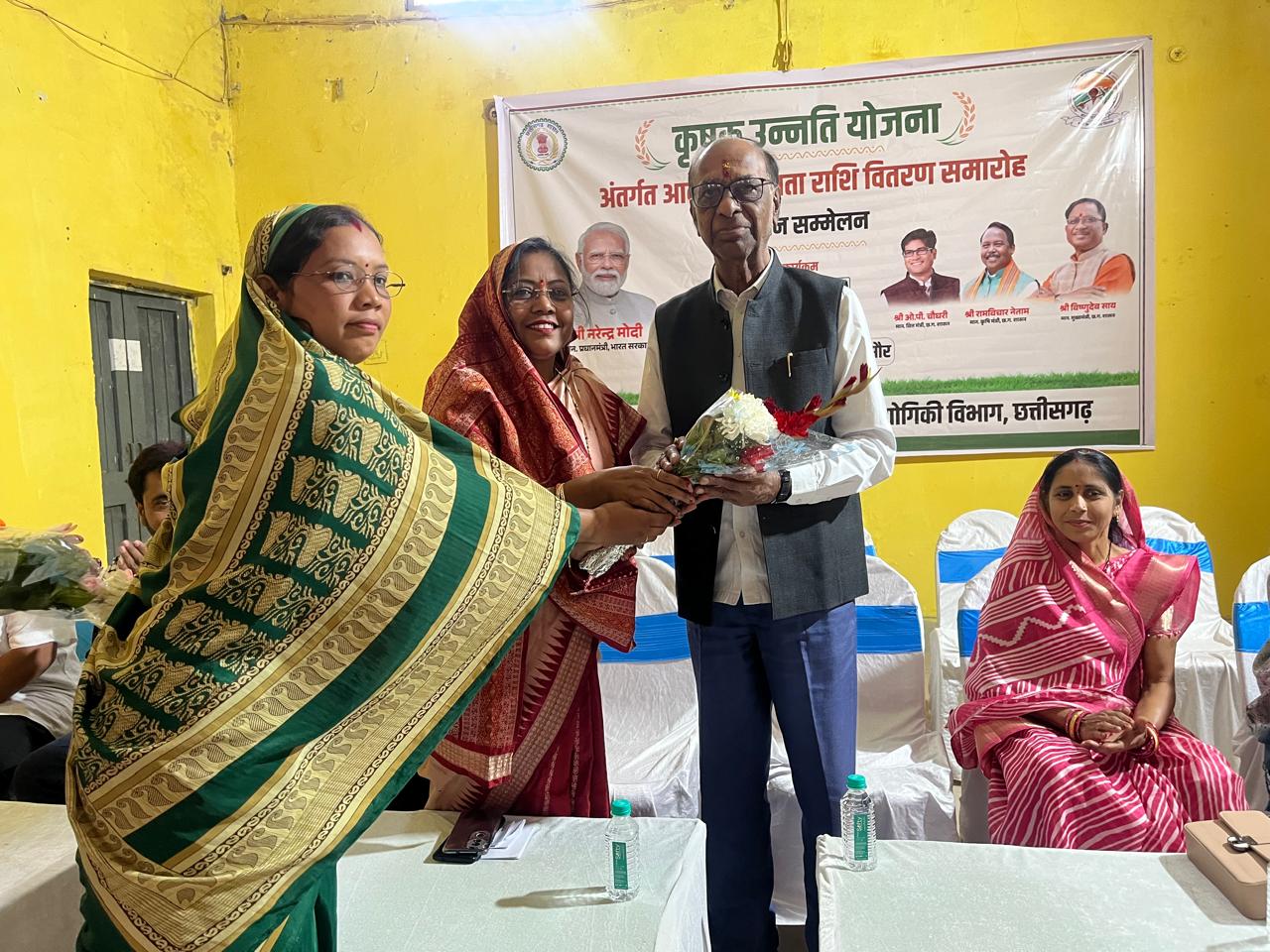 रायगढ़ जिले के विकासखंड पुसौर के मंगल भवन में आयोजित जनपद पंचायत स्तरीय कार्यक्रम के माध्यम से कृषक उन्नति योजना अंतर्गत आदान सहायता राशि वितरण समारोह एवं किसान सम्मेलन में मुख्य अतिथि के रूप में रायगढ़ के पूर्व विधायक विजय अग्रवाल सम्मिलित हुये एवं कार्यक्रम के अध्यक्षता के रूप में जनपद पंचायत पुसौर के अध्यक्ष श्रीमति हेमलता हरिशंकर चौहान, अति विशिष्ट अतिथियों में नगर पंचायत पुसौर अध्यक्ष श्रीमति मानी मोहित सतपथी, जिला पंचायत सदस्य एवं कृषि स्थायी समिति सभापति वृजेश गुप्ता, जिला पंचायत सदस्य श्रीमति भाग्यवती डोलनारायण नायक , जिला पंचायत सदस्य श्रीमति लक्ष्मी जीवन पटेल, विशिष्ट अतिथियों में पुसौर जनपद पंचायत सदस्य एवं कृषि स्थायी समिति सभापति मुक्तेश्वर पंडा, पुसौर नगर पंचायत अध्यक्ष प्रतिनिधि मोहित सतपथी, भाजपा पुसौर मंडल अध्यक्ष जैमिनी गुप्ता, कोड़ातराई मंडल अध्यक्ष संदीप पंडा की गरिमा में उपस्थिति रही ।इस अवसर पर वर्चुअल माध्यम से किसानों को संबोधित करते हुए मुख्यमंत्री श्री विष्णुदेव साय ने कहा कि आज का दिन किसानों के सम्मान और स्वाभिमान का दिन है। उन्होंने कहा कि प्रधानमंत्री श्री नरेंद्र मोदी जी की गारंटी को पूरा करते हुए 3100 ₹प्रति क्विंटल धान की कीमत का वादा धरातल पर उतर चुका है ।मुख्यमंत्री ने कहा कि हमने वादा किया था कि किसान भाई होली का त्योहार धूमधाम से मना सके ,इसलिए होली पर्व से पहले बोनस राशि जारी की गई है। इस अवसर पर जनपद पंचायत स्तरीय कार्यक्रम में कृषक उन्नति योजना आदान सहायता बोनस राशि वितरण वर्चुअल कार्यक्रम एवं किसान सम्मेलन के मुख्य अतिथि