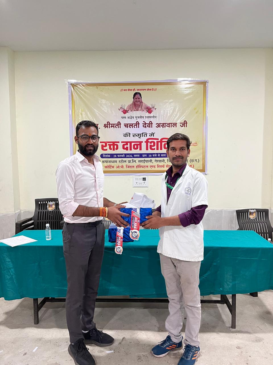 इस अवसर पर सर्वजन हिताय एवं मानव सेवा की भावना से, फोर्टिस ओ.पी. जिंदल हॉस्पिटल एंड रिसर्च सेंटर, रायगढ़ के सहयोग से एक विशाल रक्तदान शिविर आयोजित किया गया। प्लांट के कर्मचारियों ने अत्यंत उत्साह एवं समर्पण के साथ भाग लिया। सायं 5:00 बजे तक कुल 110 यूनिट रक्तदान कर कर्मियों ने माता श्री को सच्ची श्रद्धांजलि अर्पित की। यह पुनीत कार्य “परहित सरिस धर्म नहि भाई” की भावना को चरितार्थ करने वाला अनुकरणीय एवं सराहनीय प्रयास रहा।