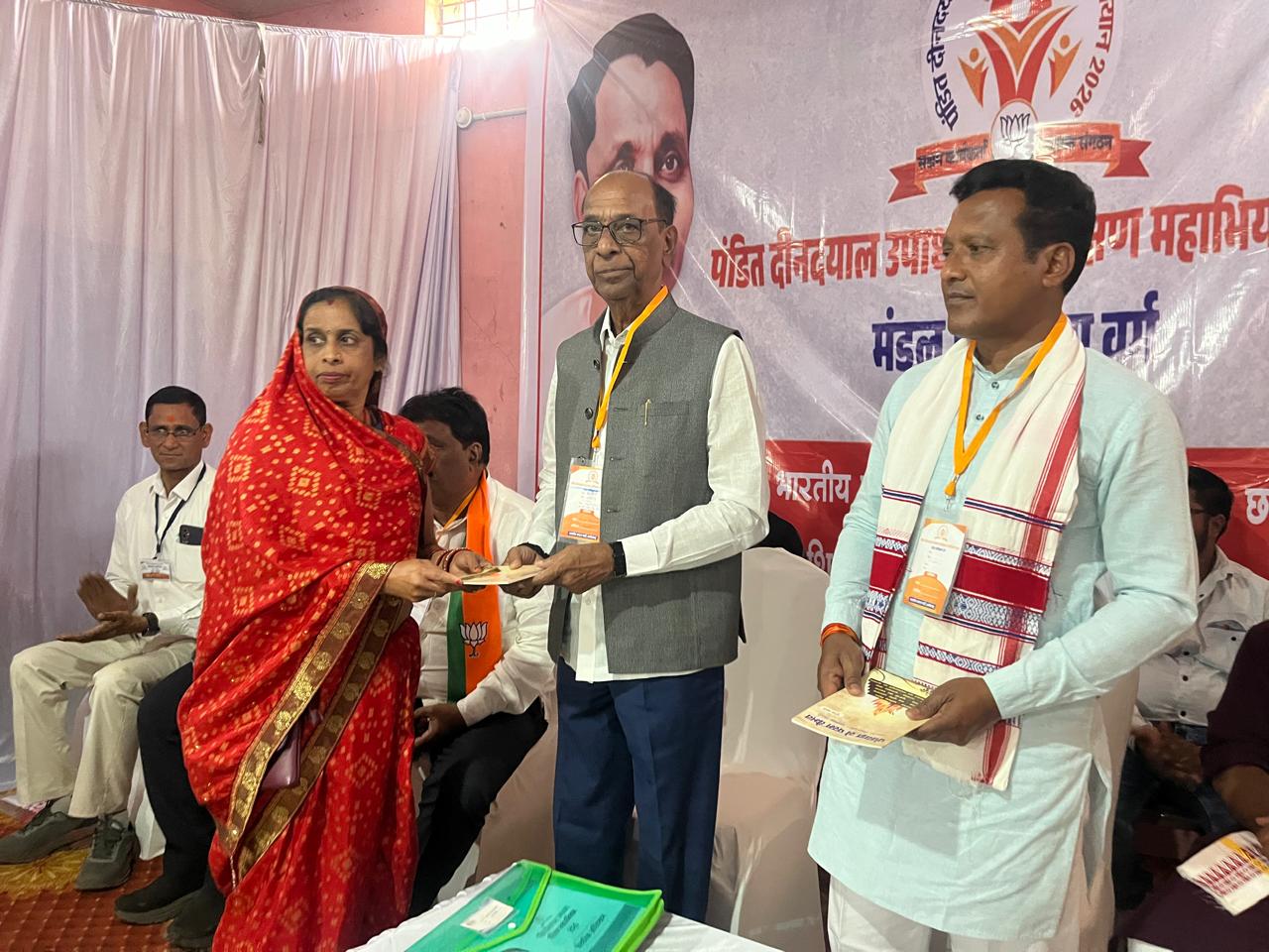 रायगढ़ (घरघोड़ा)। पंडित दीनदयाल उपाध्याय प्रशिक्षण अभियान 2026 के तहत रायगढ़ जिले के घरघोड़ा भाजपा मंडल में 24घंटे का आवासीय प्रशिक्षण वर्ग शिविर का आयोजन सरस्वती शिशु मंदिर में किया गया। शिविर के उद्घाटन अतिथि रायगढ़ सांसद राधेश्याम राठिया, अतिथि एवं वक्ता रायगढ़ के पूर्व विधायक विजय अग्रवाल, रायगढ़ जिला भाजपा प्रभारी प्रशांत सिंह ठाकुर, वक्ता सतीश बेहरा ,जिला महामंत्री विकास केडिया के द्वारा पंडित दीनदयाल उपाध्याय जी, पंडित श्यामा प्रसाद मुखर्जी एवं भारत माता की छायाचित्र के समक्ष दीप प्रज्जवलन कर किया गया। भाजपा ध्वज के ध्वजारोहण तत्पश्चात अतिथियों वक्ताओं एवं कार्यकर्ताओं के द्वारा वंदे मातरम एवं राज्य गीत का सामूहिक गान किया गया। कार्यकर्ताओं