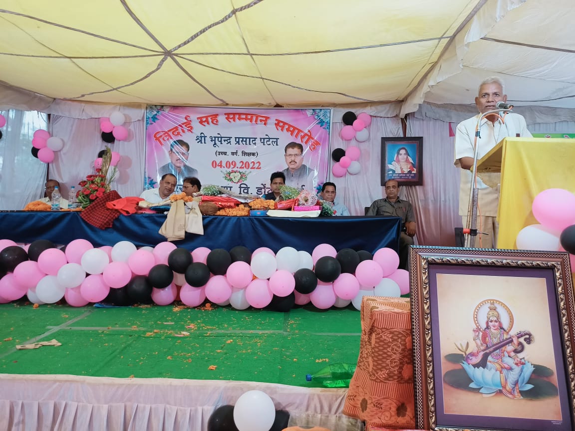 शिक्षक भूपेंद्र प्रसाद पटेल के सेवानिवृत्ति अवसर पर जिला पंचायत अध्यक्ष निराकार पटेल ने उनके दीर्घकालीन शिक्षकीय सेवा के लिए विशेष रुप से सराहना करते हुए इस सम्मान सह विदाई समारोह में उपस्थित लोगों को धन्यवाद दिया तथा कहा कि शिक्षक कभी भी सेवानिवृत्त नहीं होते वह जीवन पर्यंत शिक्षक बने रहते हैं भूपेंद्र प्रसाद पटेल एक कर्तव्यनिष्ठ व्यवहार कुशल और शिक्षक होने के साथ-साथ समाजसेवा के क्षेत्र में लोगों की हर परिस्थिति में सहयोग करने के लिए तत्पर रहने वाले व्यक्ति हैं उनके पढाये हुए लोग विभिन्न क्षेत्रों में आज सफल होकर राष्ट्र सेवा में समर्पित हैं ।