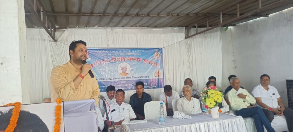 रायगढ़ | शिक्षक शब्द किसी सरकारी विभाग से बंधा हुआ कर्मचारी नहीं बल्कि वह हमारे आस – पास परिवेश में हर स्थिति और परिस्थिति में उपस्थित रहता है । पहली शिक्षक मां होती है , फिर पिता और समाज भी हमें शिक्षा देते हैं । स्कूल जाते हैं तो शिक्षक फिर कालेज में प्रोफेसर हमें शिक्षा देता है । इस प्रकार हमारे शिक्षक के रूप में पूरा परिवेश होता है । उक्त बातें शिक्षक दिवस के अवसर पर ग्राम नंदेली बीच बस्ती मंदिर सांस्कृतिक मंच में सम्पन्न शिक्षक सम्मान