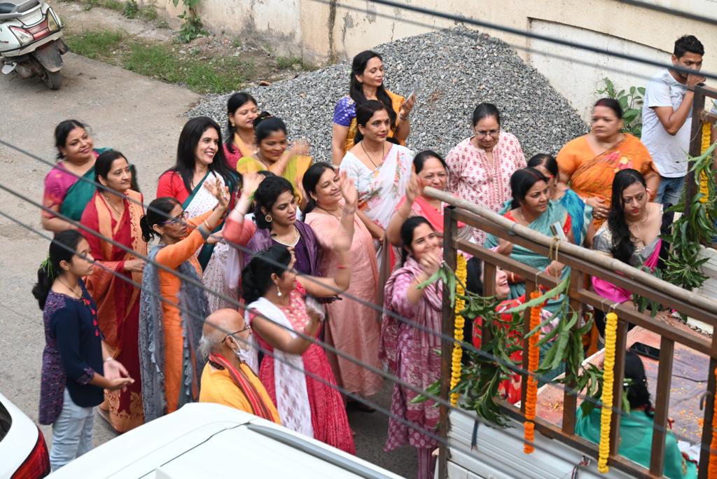 रायगढ़ – स्थानीय गजानंदपुरम कालोनीवासियों द्वारा 11 दिवस तक भव्य गणेश पूजन समारोह का आयोजन किया गया। जहा अनंत चतुर्दशी के दिन विधि विधान से पूजा अर्चना कर ढोल नगाड़ों के साथ गणेश प्रतिमा का विसर्जन केलो नदी में किया गया। जहा गजांनदपुरम के रहवासी भारी संख्या में शामिल हुए।गौरतलब है कि गणेश पूजन का आयोजन कालोनीवासियों द्वारा बीते कई वर्षो से किया जा रहा है। जहा इस आयोजन में भजन कीर्तन के साथ ही भव्य भंडारे का भी आयोजन किया गया।जिसमे सैकड़ों की संख्या में श्रद्धालुओं ने अपनी उपस्थिति दर्ज करा प्रसाद ग्रहण किया। वही गणपति बप्पा के विसर्जन कार्यक्रम में प्रमुख रूप से गजानंद पुरम कालोनीवासियों में विधायक प्रकाश नायक,बलबीर शर्मा, ऋतिक नायक, ,सुनील ,साहिल,हिमांशु कारमोरे,डॉक्टर श्रीवास्तव,मुन्ना शर्मा , बाला शर्मा ,गंगा शर्मा , कृष्णा शर्मा ,बबली दीपक अग्रवाल ,श्रीमती सुषमा प्रकाश नायक,चिंकी देवांगन ,सुशीला अग्रवाल ,मंजू धारीवाल,पम्मी धारीवाल,मीना अग्रवाल,नीलम ,आशा ,सीमा, अनीता अग्रवाल,मधु श्रीवास्तव, चंद्रा सक्सेना,कविता मिश्रा,रेखा देवेश अग्रवाल,कमला पटेल,नीलिमा पटेल,हेमा पटेल ,लक्ष्मी पटेल,चंद्रकला पटेल,अदिति पटेल,सोनल मिश्रा,रितेश, बीना,मंगल, किरण अग्रवाल,सिंपी बर्नवाल,अनीता देवांगन सहित अन्य गणमान्य नागरिक शामिल रहे।