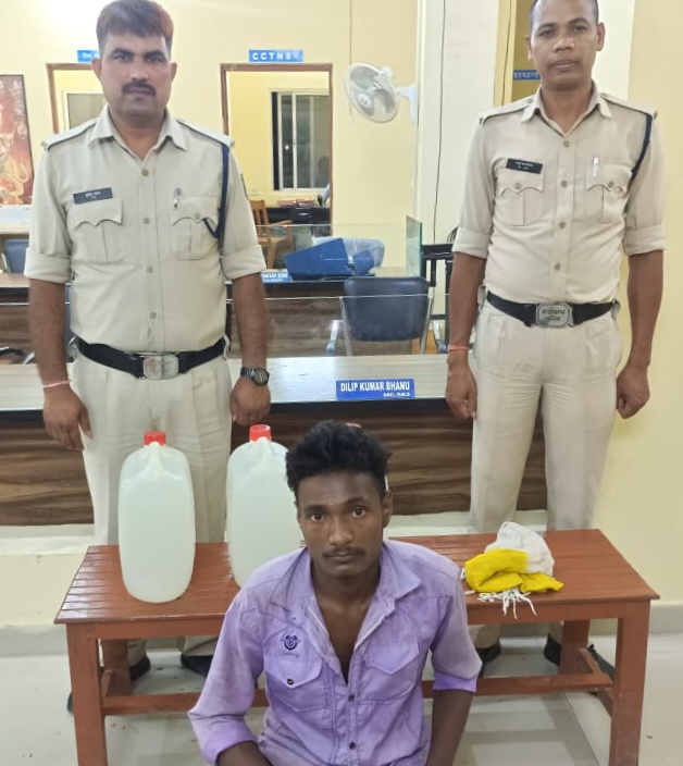 रायगढ़ । थाना प्रभारी चक्रधरनगर निरीक्षक शनिप रात्रे के नेतृत्व में आज दिनांक 16.09.2022 को चक्रधरनगर स्टाफ द्वारा मुखबीर सूचना पर आरोपी राजेश मिर्धा पिता दुकालू मिर्धा उम्र 22 वर्ष निवासी सराईपाली थाना चक्रधरनगर के पास से 3 प्लास्टिक जरीकेन में 30 लीटर महुआ शराब की जब्ती* किया गया है । आरोपी द्वारा मुख्य मार्ग के किनारे आम पेड़ के नीचे शराब छुपा कर रखा हुआ था जिसके बिक्री के लिए ग्राहक तलाश करते समय पुलिस को मुखबिर से सूचना मिली । थाना प्रभारी के निर्देषन पर तत्काल पुलिस टीम शराब रेड कार्रवाई कर मय शराब आरोपी को हिरासत में लेकर थाना लाया गया । आरोपी राजेश मिर्धा पर धारा 34(1),34(2), 59 (क) आबकारी एक्ट के तहत कार्यवाही किया गया है । शराब रेड कार्यवाही में सहायक उपनिरीक्षक संतरा चौहान, आरक्षक विक्रम कुजूर और आरक्षक चुड़ामणी गुप्ता शामिल थे ।