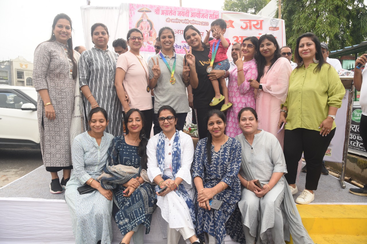 जयंती कार्यक्रम के अन्तर्गत विगत 19 की सुबह सात बजे कमला नेहरू पार्क में पारिवारिक माहौल में कार्यक्रम प्रभारी मार्निंग वॉकर्स सोसायटी दीपक डोरा, संजय खेमका, सुनील मोदी, विमल मित्तल के विशेष मार्गदर्शन में भव्य मैराथन दौड़ प्रतियोगिता का आयोजन किया गया। जिसमें अग्र समाज के पुरुष व महिला सदस्यों ने शताधिक संख्या में बड़े ही उत्साह के साथ भाग लिया। वहीं इस प्रतियोगिता में पुरुष 30 वर्ष से ऊपर में प्रथम – विजय अग्रवाल, द्वितीय – दीपक गर्ग, तृतीय – नवीन जैन व पुरुष 50 वर्ष से ऊपर की दौड़ में प्रथम – जितेन्द्र गोयल, द्वितीय – सतीश अग्रवाल, तृतीय – विजय अग्रवाल व विनय अग्रवाल को मिला। इसी तरह अग्र मैराथन की महिला प्रतियोगिता के अंतर्गत 30 वर्ष से ऊपर में प्रथम – पूजा सावड़िया, द्वितीय – शिल्पी सावड़िया, तृतीय स्थान स्नेहा अग्रवाल को मिला। इसी तरह महिला 50 वर्ष से ऊपर में प्रथम – कविता अग्रवाल द्वितीय – मंजू अग्रवाल व तृतीय स्थान मीना अग्रवाल को मिला जिससे सभी हर्षित हुए।