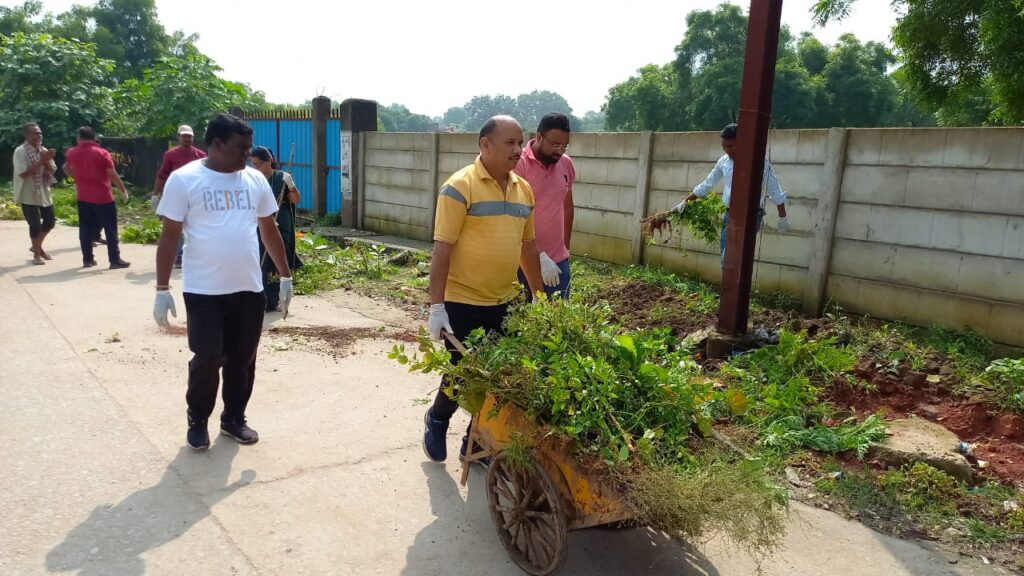 एकाउंट आफिसर श्री आरएन पटेल, एकाउंटेंट श्री अजय यादव सहित निगम के अधिकारी कर्मचारियों ने भी सड़क किनारे उगे हुए घास की सफाई की। मेयर श्रीमती काटजू ने कहा की शहर की स्वच्छता हम सभी को जिम्मेदारी है। हम अपनी जिम्मेदारी निभाकर ही सुग्घर रायगढ़ की परिकल्पना को साकार कर सकते हैं। एमआईसी सदस्य स्वास्थ विभाग प्रभारी श्री संजय देवांगन ने कहा की निगम स्वास्थ विभाग द्वारा स्वच्छता लीग के तहत लगातार कार्यक्रम का आयोजन किया जा रहा है। इसी कड़ी में आज श्रमदान से सफाई कार्यक्रम रखा गया था, जिसमे गोगा राइस मिल से मिठ्ठूमुड़ा चौक तक की सड़क की सफाई की गई। श्री देवांगन ने निगम के कार्यक्रम में ज्यादा से ज्यादा संख्या में शामिल होने शहरवासियों से अपील की है। कार्यक्रम में निगम के अधिकारी कर्मचारी व मोहल्लेवासी शामिल थे।