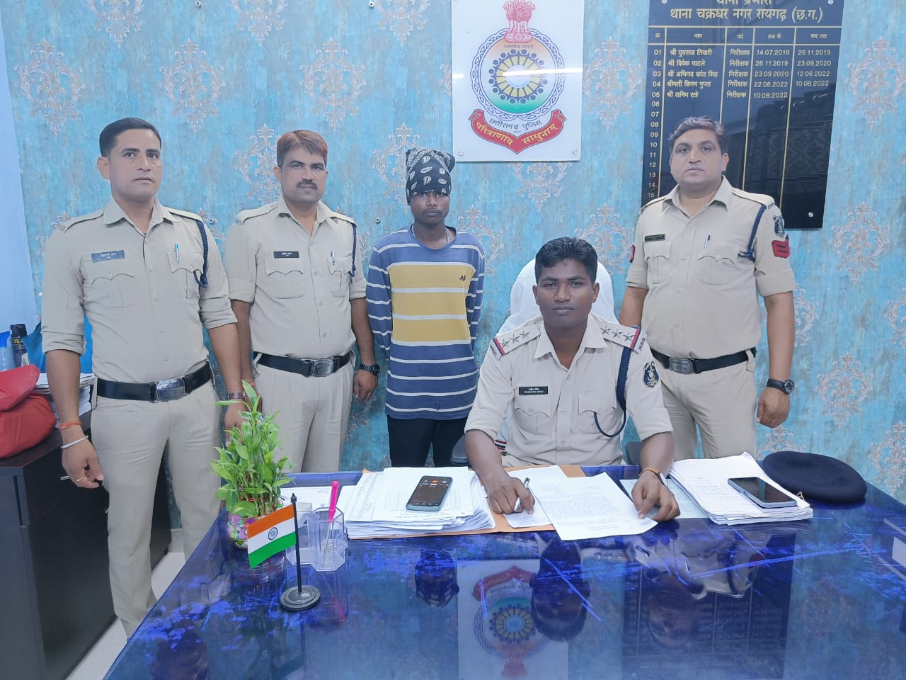 थाना का चार्ज लेने के बाद निरीक्षक थाना प्रभारी प्रवीण मिंज द्वारा लंबित मामलों के फरार आरोपियों की गिरफ्तारी लिये अपने स्टाफ को मुखबिर लगाकर नये सिरे से आरोपियों की पतासाजी का निर्देश दिया गया । इसी कड़ी में आज आरोपी मुक्ति प्रकाश को रेगड़ा में घूमते देखे जाने की सूचना पर पुलिस टीम द्वारा घेराबंदी कर आरोपी को गिरफ्तार किया गया जिससे घटना में प्रयुक्त चाकू की जब्ती की गई है, आरोपी को आज न्यायिक रिमांड पर भेजा गया है । आरोपी पतासाजी, गिरफ्तारी में थाना प्रभारी चक्रधरनगर निरीक्षक प्रवीण मिंज, उप निरीक्षक दिनेश बहिदार, प्रधान आरक्षक लोमश राजपूत, आरक्षक सुशील यादव, चुडामणी गुप्ता की प्रमुख भूमिका रही है ।