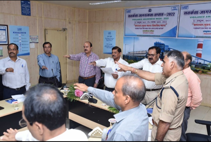 एनटीपीसी लारा द्वारा भ्रष्टाचार उन्मूलन के उद्देश्य से दिनांक 31 अक्तूबर 2022 से 06 नवम्बर 2022 तक सतर्कता जागरूकता सप्ताह मनाया जा रहा है। इसका शुभारंभ दिनांक 31 अक्तूबर 2022 को श्री अखिलेश सिंह, महाप्रबन्धक (प्रचालन एवं अनुरक्षण) द्वारा अन्य महाप्रबंधकगण, विभागाध्यक्ष एवं कर्मचारियों की उपस्थिती में किया गया। इस अवसर पर उपस्थित कर्मचारियों को श्री अखिलेश सिंह जी द्वारा सत्यनिष्ठा प्रतिज्ञा एवं राष्ट्रीय एकता की सपथ दिलाई गई। सतर्कता जागरूकता सप्ताह की रूपरेखा की जानकारी श्री पंकज शेखर, विभागाध्यक्ष सतर्कता द्वारा दी गई। इस दौरान