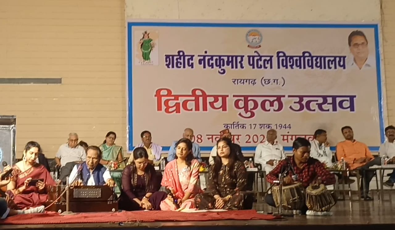 शहीद नंदकुमार पटेल विश्वविद्यालय के द्वितीय कुल उत्सव का गरिमामय आयोजन नगर निगम सभागृह में विश्वविद्यालय के कुलपति डॉ. ललित प्रकाश पटैरिया के कुशल मार्गदर्शन में संपन्न हुआ जिसके मुख्य अतिथि उमेश पटेल उच्च शिक्षा मंत्री छत्तीसगढ़ शासन एवं विशिष्ट अतिथि प्रकाश नायक विधायक रायगढ़, लालजीत सिंह राठिया विधायक धर्मजयगढ़ उत्तरी जांगड़े विधायक सारंगढ़, निराकार पटेल अध्यक्ष जिला पंचायत रायगढ़, श्रीमती जानकी काटजू महापौर नगर पालिक निगम की गरिमामय उपस्थिति एवं कुलपति डॉ.ललित प्रकाश पटैरिया की अध्यक्षता रही । इस कार्यक्रम में अटल बिहारी विश्वविद्यालय बिलासपुर के कुलपति ए .डी .एन बाजपेई प्रतिष्ठित पत्रकार सुभाष त्रिपाठी, कलागुरू संगीत शिरोमणि वेदमणि सिंह ठाकुर, राज्यपाल महोदया के विश्वविद्यालय में प्रतिनिधि कैलाश अग्रवाल एवं विजय शंकर पटनायक, संगीतकार जगदीश मेहर की विशिष्ट उपस्थिति रही । कार्यक्रम का शुभारंभ छत्तीसगढ़ के राजगीत अरपा पैरी के धार …से किया गया तत्पश्चात आमंत्रित अतिथियों द्वारा माँ सरस्वती के चित्र के समक्ष दीप प्रज्वलन किया गया एवं विश्वविद्यालय के कुल पुरुष शहीद नंदकुमार पटेल जी के चित्र पर पुष्पांजलि अर्पित की गई । कार्यकम के प्रारंभ में स्वागत उद्बोधन देते हुए कुलपति डॉ. ललित प्रकाश पटैरिया ने विश्वविद्यालय की अल्पकाल में ही प्राप्त उपलब्धियों का प्रतिवेदन भी पढा उन्होंने विश्वविद्यालय की भावी योजनाओं से भी अवगत कराया उन्होंने बताया कि विश्वविद्यालय मे ऑनलाइन पोर्टल के माध्यम से प्रवेश हेतु प्रक्रिया की गई एवं इस वर्ष ऑफलाइन परीक्षाओं को संपन्न कराने संबंधित तैयारियां भी विश्वविद्यालय कर रहा है । समय पर परीक्षा परिणाम घोषित करने का प्रयास भी विश्वविद्यालय द्वारा किया जावेगा शोध कार्यों को बढ़ावा देने के लिए विभिन्न महाविद्यालयों को शोध केंद्रों के रूप में भी विकसित किया जा रहा है । कार्यक्रम में उपस्थित विशिष्ट अतिथि श्रीमती जानकी काटजू, निराकार पटेल लालजीत सिंह राठिया द्वारा शहीद नंद कुमार पटेल के व्यक्तित्व और उनके द्वारा किए गए कार्यों पर प्रकाश डाला गया । इस अवसर पर अटल बिहारी विश्वविद्यालय के कुलपति अरुण दीवाकर नाथ बाजपेई ने भी शहीद नंदकुमार पटेल के संबंध में अपने विचार व्यक्त करते हुए बताया कि रायगढ़ क्षेत्र में विश्वविद्यालय स्थापित करने का जो सपना नंदकुमार पटेल जी ने देखा था वह भौतिक रूप से स्थापित हो चुका है और डॉ. पटैरिया के कुशल मार्गदर्शन में यह विश्वविद्यालय उत्तरोत्तर प्रगति करेगा ।