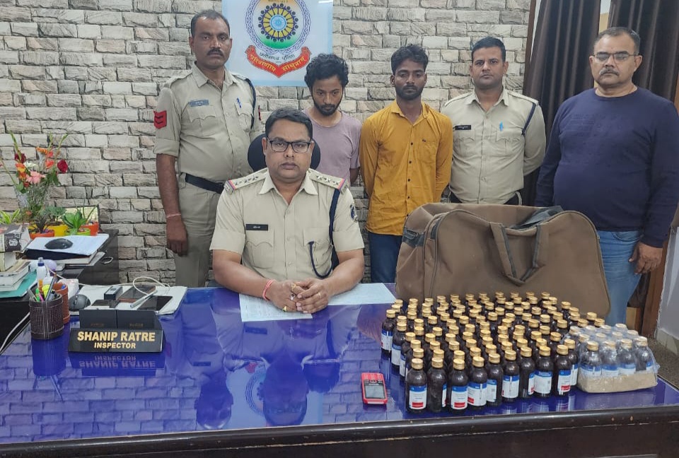 रायगढ़। एसपी श्री अभिषेक मीना के जुआ, सट्टा, अवैध शराब पर पूर्णता प्रतिबंध लगाए जाने के दिशा निर्देश पर थाना प्रभारी कोतवाली निरीक्षक शनिप रात्रे द्वारा एडिशनल एसपी संजय महादेवा व सीएसपी रायगढ़ अभिनव उपाध्याय के मार्गदर्शन अपने अधीनस्थ विवेचकों एवं स्टाफ को मुखबिर लगाकर कार्यवाही का निर्देश दिया गया है । इसी क्रम में आज दोपहर कोतवाली पुलिस द्वारा मुखबीर सूचना पर रामनिवास टॉकीज के पास दो व्यक्तियों को एक्टिवा स्कूटी पर प्रतिबंधित नशीली कफ सिरप वनरीक्स परिवहन करते पकड़ा गया है पुलिस को मुखबिर से सूचना मिली थी कि दो व्यक्ति एक्टिवा स्कूटी पर कफ सिरप को अवैध रूप से खपाने रायगढ़ रामनिवास टॉकीज की ओर जा रहे हैं सूचना पर कोतवाली पुलिस द्वारा दबिश देकर होंडा एक्टिवा क्रमांक सीजी 13 ए.एल. 0597 पर आयुष कुमार छड़ीमली और इरफान खान को पकड़ा गया जिनके कब्जे से 112 नग ONEREEX कफ सिरप कीमती 18540 रूपये का जप्त किया गया है । जप्त कफ सिरप के संबंध में दोनों युवक किसी प्रकार का कागजात होना नहीं बताए । आरोपियों पर थाना कोतवाली में धारा 22 एनडीपीएस एक्ट के तहत कार्यवाही किया जा रहा है । रेड कार्यवाही में थाना प्रभारी कोतवाली निरीक्षक शनिप रात्रे, उपनिरीक्षक आर. एस. तिवारी, प्रधान आरक्षक श्रीराम साहू ,आरक्षक उत्तम सारथी, पुष्पेंद्र जाटवर की प्रमुख भूमिका रही है ।