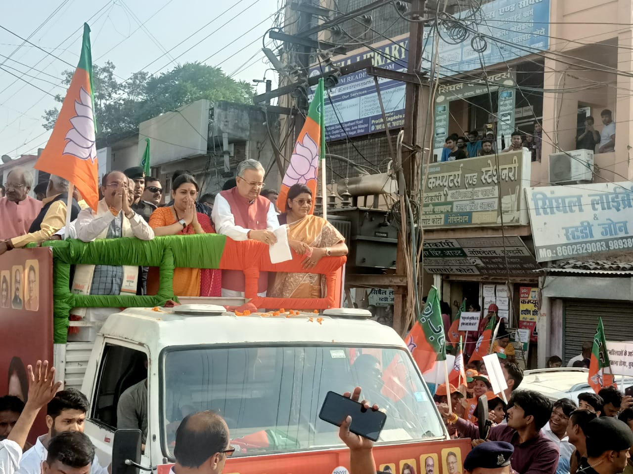 बिलासपुर / आज बिलासपुर की सड़कों पर हजारों की तादाद में भाजपाइयों ने अपना जन आक्रोश दिखाया। छत्तीसगढ़ कांग्रेस सरकार द्वारा महिलाओं के साथ अपने कार्यकाल में किए गए छलावे और झूठे वादे को लेकर भाजपा अपने कार्यकर्ताओं के साथ बिलासपुर की सड़कों पर उतरी। जिसमें केंद्रीय मंत्री श्रीमती स्मृति ईरानी भी इस महारैली में शामिल हुई बिलासपुर के नेहरू चौक पर महतारी हुंकार रैली का जनसभा आयोजन किया गया था। गौरतलब हो कि छत्तीसगढ़ में भाजपा के तमाम कार्यकर्ताओं ने आज अपनी ताकत झोंक दी थी लोगों की भीड़ जुटाने के लिए जिसमें छत्तीसगढ़ के सभी जिलों से कार्यकर्ता जुटे हुए थे इस हुंकार रैली में डॉ रमन सिंह पूर्व मुख्यमंत्री, अरुण साहू प्रदेश अध्यक्ष, कार्यकर्ताओं का आज जमावड़ा दिखा। भाजपा का यह दावा भी है कि इस रैली से राज्य सरकार के खिलाफ शंखनाद है। प्रदेश की महिलाओं को उत्पीड़न से बचाने के लिए भाजपा महिला मोर्चा सरकार के खिलाफ अपनी आवाज बुलंद की है। रायगढ़ से भी सैकड़ों भाजपा कार्यकर्ताओं ने बिलासपुर में सहभागिता दिखी। भाजपा के सभी जिलों से आए छोटे बड़े तमाम नेताओं ने इस महा जनसभा में, कांग्रेस सरकार का पुरजोर विरोध किया।