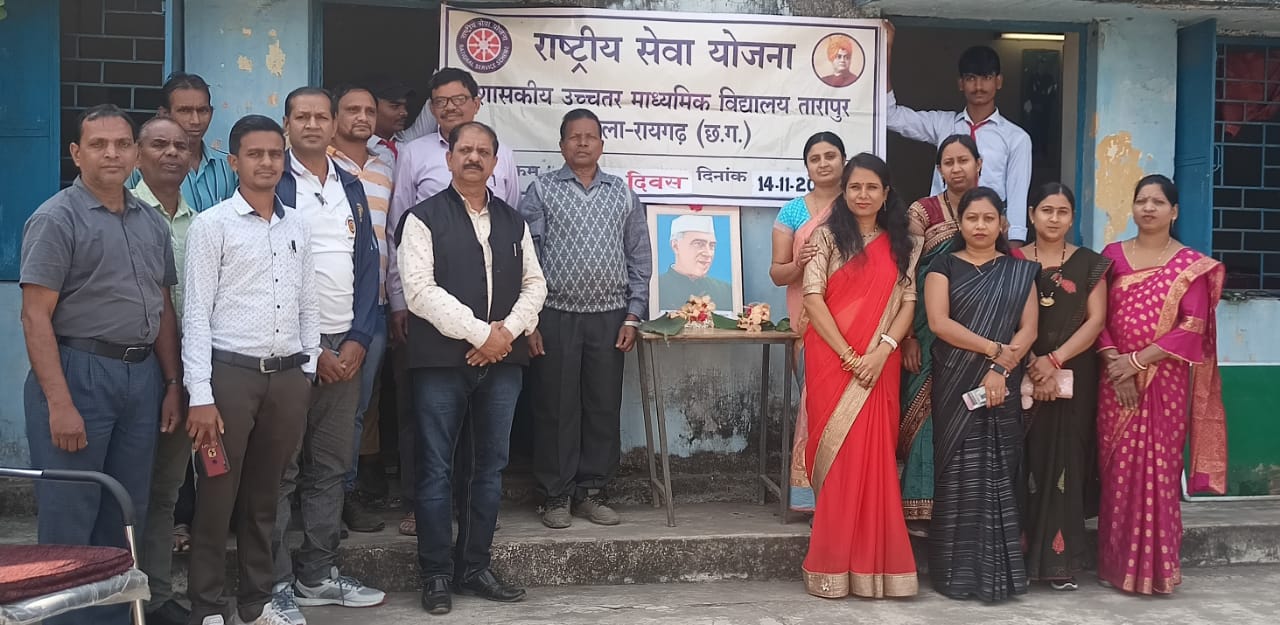रायगढ़।भारत के प्रथम प्रधानमंत्री पं.जवाहर लाल नेहरू के जन्म जयंती 14 नवम्बर को बाल दिवस के अवसर पर शासकीय उच्चतर माध्यमिक विद्यालय तारापुर में विविध कार्यक्रमों के साथ चाचा नेहरू को श्रद्धा सुमन अर्पित किया गया । संस्था के प्राचार्य विद्याचरण प्रसाद कालो एवं समस्त स्टाफ द्वारा पं. जवाहरलाल नेहरू जी के चित्र पर पुष्प चढ़ाकर उन्हें श्रद्धा सुमन अर्पित किया गया वहीं ग्राम पंचायत के सरपंच राजीव डनसेना ने भी विद्यालय पहुंचकर चाचा नेहरू के जन्म जयंती पर बाल दिवस कार्यक्रम में बच्चों का उत्साहवर्धन किया। स्कूली बच्चों के लिए विभिन्न खेलकूद एवं मनोरंजक प्रतियोगिताओं का आयोजन कर बाल दिवस की सार्थकता को सिद्ध किया गया । बच्चों के द्वारा स्टाल लगा कर विविध खाद्य पदार्थों गुपचुप,भेलपुरी, चाय इत्यादि की दुकान के माध्यम से आनंद मेला का आयोजन किया गया और बच्चों के खेल प्रतिभा को प्रोत्साहित करने के लिए म्युजीकल चेयर कुर्सी दौड़, जलेबी दौड़, कबड्डी, जैसे मनोरंजक खेल प्रतियोगिताओं के माध्यम से उनमें आपसी प्रतिस्पर्धा की भावना को प्रेरित किया गया । संस्था के प्राचार्य श्री कालो के साथ माध्यमिक खंड से प्रधान पाठक कुमार साहू राष्ट्रीय सेवा योजना के कार्यक्रम अधिकारी भोजराम पटेल, एनसीसी ऑफिसर किरण कुमार पटेल व्याख्याता मंजू पटेल, चंद्रशेखर पटेल, चंद्रकांता सिदार, नीलम मालाकार, पी.टी.आई. विनीता पाणी शिक्षक – रामेश्वर डनसेना, श्रीमती रीता चौहान माध्यमिक खण्ड से सुधाबाला नायक, मनोज पटेल, श्रीमती किरण पटेल कार्यालय स्टाफ से केतन प्रसाद पटेल सरिता पटेल अलेखराम सिदार एवं महेन्द्र सिदार की सक्रिय भागीदारी रही।