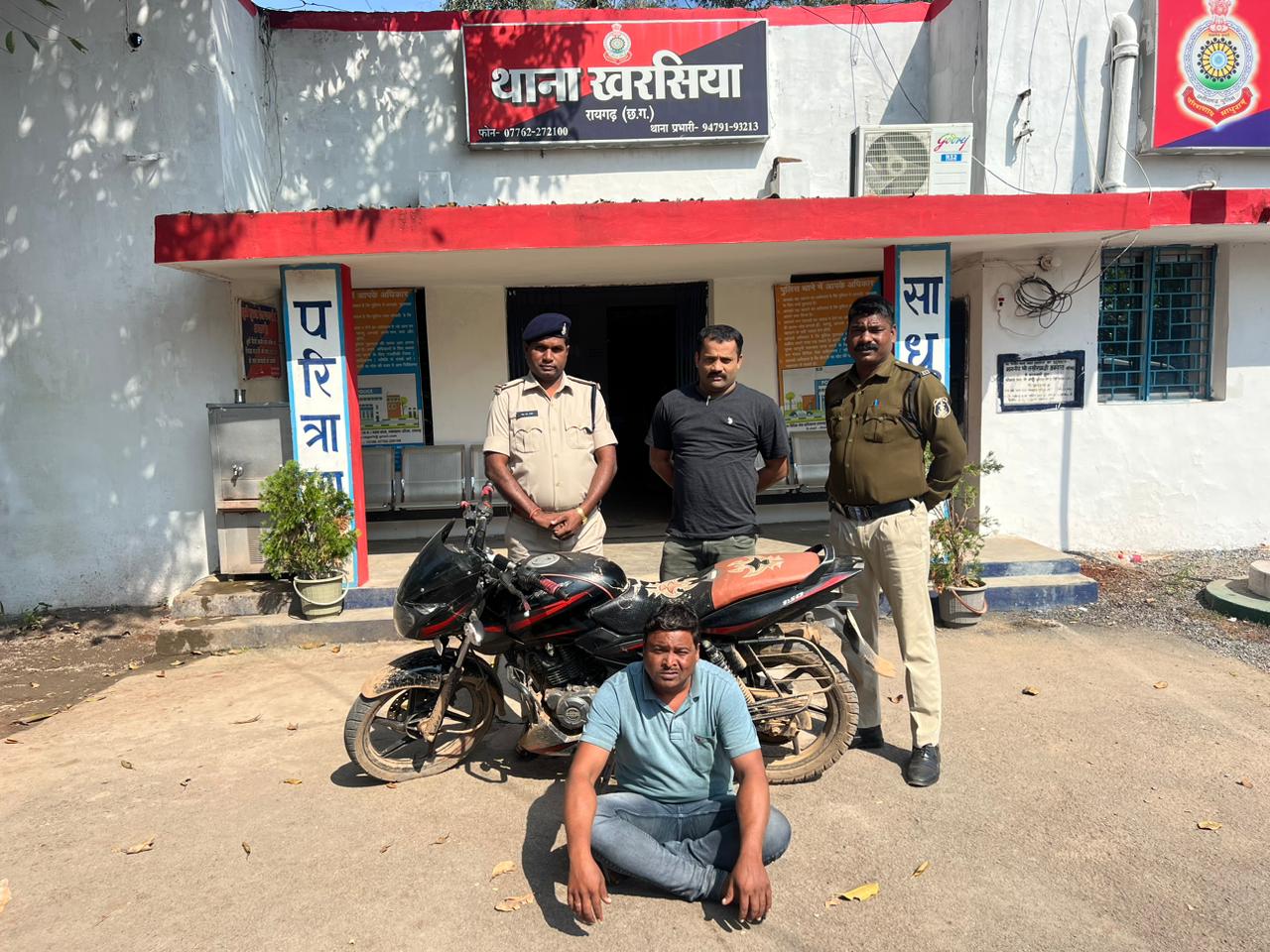 रायगढ़ । कल दिनांक 19.11.2022 को थाना खरसिया में ग्राम करपीपाली में रहने वाली श्रीमती ज्योति डनसेना पति जिनेन्द्र डनेसना (35 साल) द्वारा चैन लूटपाट का लिखित आवेदन देकर रिपोर्ट दर्ज कराया गया । ज्योति डनसेना बताई कि वह आंगनबाड़ी कार्यकर्ता है, बीते 18 नवंबर के दोपहर अपने बच्चे को लेने सेन्टजॉन स्कूल खरसिया स्कुटी से जा रही थी, सोनबरसा-गीधा के बीच बडे पत्थर के पास तेज रफ्तार से एक व्यक्ति मोटर सायकल पर आया और स्कुटी को जोर से टक्कर मारकर गिरा दिया और पहने हुए गले के चैन को छिनकर भागने लगा । उसे पहचान गई चैन लूटने वाला गांव का गजांनद यादव था जिसने किसी को बताआगे तो जान से मारने की धमकी दिया । उसके धमकी के भय से उस समय थाने जाकर रिपोर्ट दर्ज नहीं कराई । अपने पति को घटना की जानकारी देकर घटना का लिखित आवेदन देकर थाना में रिपोर्ट दर्ज कराया गया । थाना प्रभारी खरसिया उपनिरीक्षक नंदकिशोर गौतम द्वारा आरोपी गजानंद यादव के विरुद्ध अपराध क्रमांक 566/2022 धारा 394, 294, 506 आईपीसी के तहत अपराध पंजीबद्ध कर वरिष्ठ अधिकारियों को अवगत कराते हुए आरोपी पतासाजी के लिए ग्राम करपीपाली जाकर दबिश दिए । आरोपी गजानंद यादव उसके घर से फरार था । थाना प्रभारी आरोपी गिरफ्तारी के लिए गजानंद यादव के जान परिचित एवं अपने मुखबिरों से आरोपी के संबंध में जानकारी जुटाए जिसके भूपदेवपुर की ओर देखे जाने की सूचना मिली । एसडीओपी खरसिया निमिषा पाण्डेय के निर्देशन पर तत्काल थाना प्रभारी के हमराह सहायक उपनिरीक्षक लक्ष्मी राठौर तथा आरक्षक योगेश साहू भूपदेवपुर में दबिश देकर आरोपी गजानंद यादव को हिरासत में लेकर थाना लाया गया, पूछताछ में आरोपी द्वारा अपना अपराध स्वीकार किया है जिसके मेमोरेंडम पर लूटा हुआ सोने का चैन कीमत 9,000 रूपये तथा घटना में प्रयुक्त बिना नंबर मोटरसाइकिल पल्सर काला लाल रंग का कीमत 90,000 रूपये को जप्त कर प्रकरण में धारा 427 आईपीसी विस्तारित कर आरोपी गजानंद यादव पिता मंगलू राम उम्र 42 वर्ष निवासी करपीपाली थाना खरसिया जिला रायगढ़ को आज गिरफ्तार कर न्यायिक रिमांड पर भेजा गया है ।