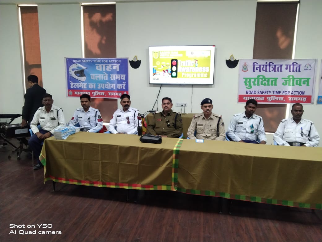 रायगढ़ । सड़क सुरक्षा को बढ़ावा देने एवं दुर्घटनाओं की रोकथाम एवं उपाय से स्कूली बच्चों को जागरूक करने यातायात पुलिस द्वारा पुलिस अधीक्षक श्री अभिषेक मीना के दिशा-निर्देशन एवं अतिरिक्त पुलिस अधीक्षक श्री संजय महादेवा तथा उप पुलिस अधीक्षक यातायात रायगढ़ श्री दीपक मिश्रा के मार्गदर्शन में यातायात जागरूकता अभियान की शुरूवात की गई है । आज सुबह थाना यातायात के पुलिस अधिकारियों एवं कर्मचारियों द्वारा स्थानीय साधु राम विद्या मंदिर रायगढ़ में यातायात जागरूकता कार्यक्रम आयोजित किया गया ।