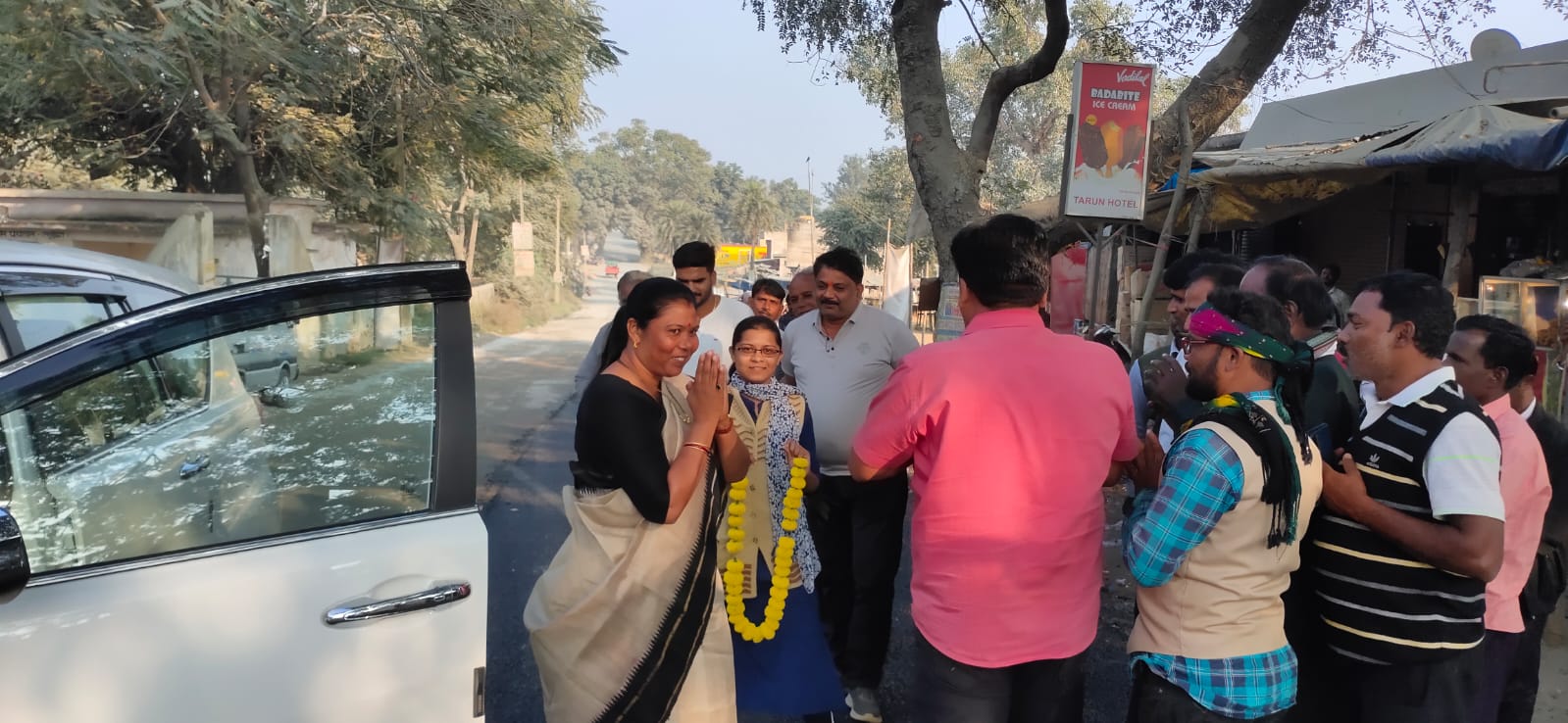सांसद श्रीमती गोमती साय का फूलमाला स्वागत कर जताया आभार