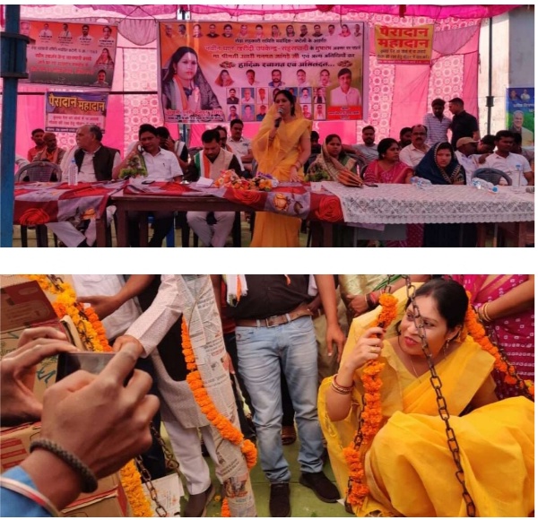 ग्रामवासियों ने विधायक उत्तरी जांगड़े को रसगुल्ले व गौ सेवा आयोग के सदस्य को केले से तौल कर किया अभिनंदन