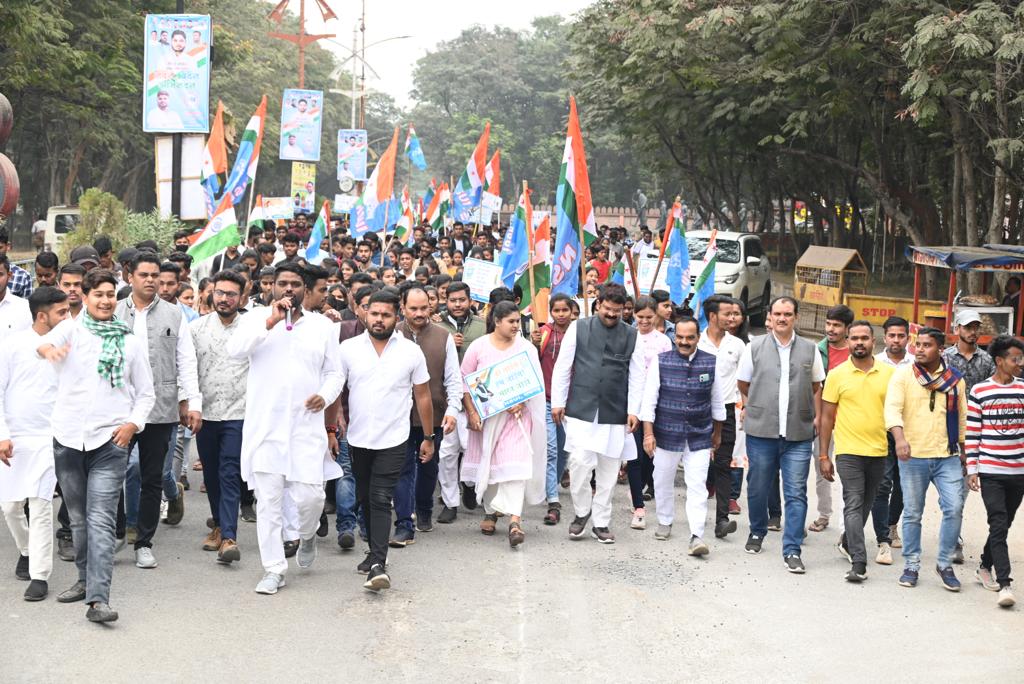 आज रायगढ़ NSUI के अध्यक्ष आरिफ़ हुसैन द्वारा रायगढ़ शहर में भव्य रूप से भारत जोड़ो यात्रा शहर के अम्बेडकर चौक से प्रारंभ कर शहीद चौक गौरीशंकर सुभाष चौक गांधी प्रतिमा होकर जिला कांग्रेस कमेटी मे समापन किया गया जिसमें NSUI के प्रदेश अध्यक्ष नीरज पांडे शामिल होने के रायगढ़ पहुँचे थे