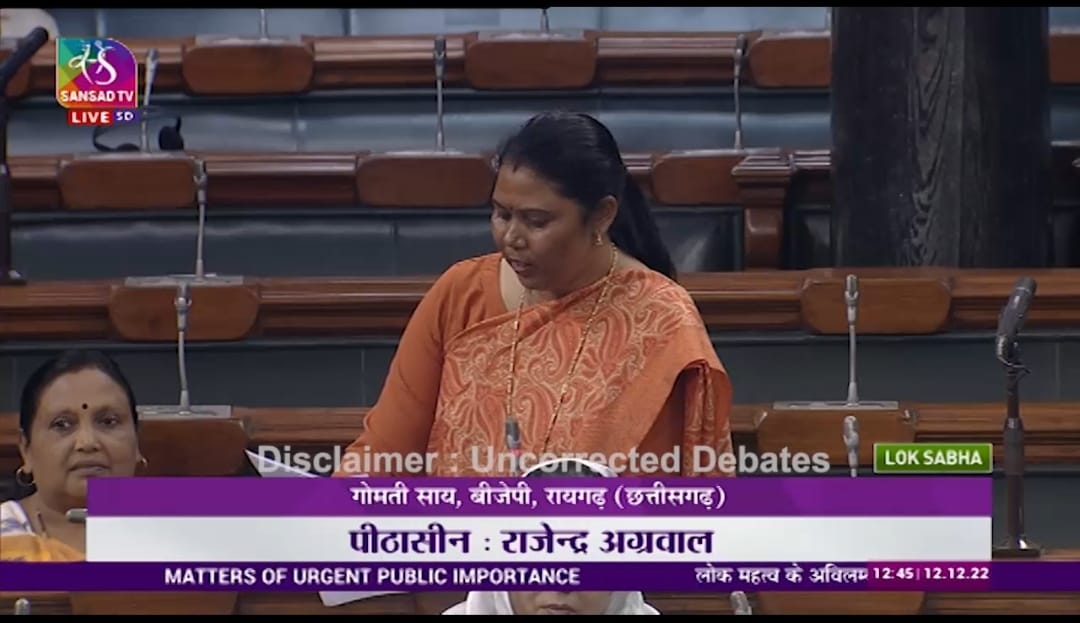फरसाबहार। रायगढ़ सांसद श्रीमती गोमती साय ने आज संसद में रायगढ़ के प्रदूषण का मुद्दा उठाया। श्रीमती साय ने प्रश्न काल के दौरान कहा कि आज रायगढ़ शहर देश में चौथा सबसे प्रदूषित शहर का खिताब प्राप्त कर चुका। रायगढ़ जिला वर्तमान में प्रदूषण जनित बीमारियों से तेजी से ग्रसित हो रहा है। देश में जब भी प्रदूषण की बात होती है तो केवल दिल्ली पर ही आकर चर्चा सिमट जाती है जबकि छत्तीसगढ़ का सुदूर वनांचल जिला रायगढ़ औद्योगिकरण के चलते प्रदूषण की विकराल समस्या का सामना कर रहा है।