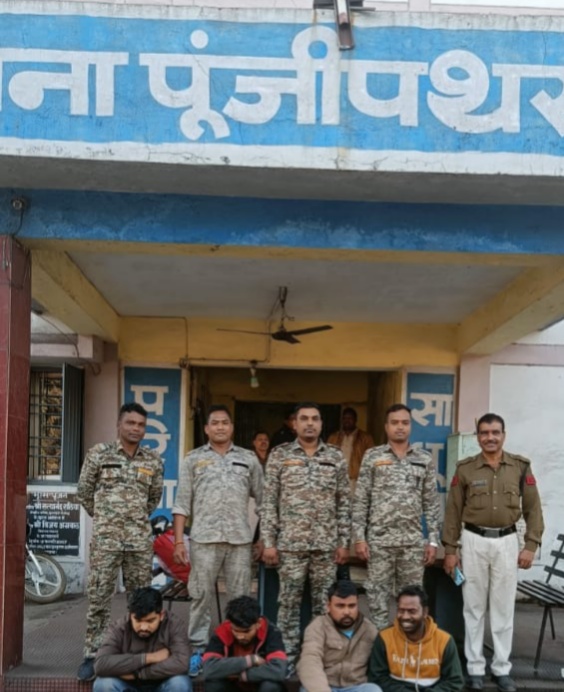 रायगढ़ । थाना पूंजीपथरा अंतर्गत बी.एस. स्पंज प्रायवेट लिमिटेड तराईमाल के मैनेजर आकाश दीप गुरूंग ने 16 दिसंबर को थाना पूंजीपथरा में आवेदन देकर प्लांट के कांटा आपरेटर चिंतामणी मेहर और ओमप्रकाश साहू के द्वारा प्लांट में रा मटेरियल (पायलेट गोली) ट्रकों में लेकर आने वाले ड्रायवरों से सांठगांठ कर ट्रको में लाये गये लोड माल को पूरा माल बताकर प्रत्येक गाडियों से 10-10 टन रा मटेरियल की अफरा तफरी किये जाने के संबंध में आवेदन देकर रिपोर्ट दर्ज कराया गया । मामले में पूंजीपथरा पुलिस कार्यवाही करते हुए एफआईआर दर्ज कर दोनों कांटा ऑपरेटर और मौके से फरार हुये 3 ट्रक ड्रायवरों की पतासाजी कर दो ट्रक ड्रायवारों को गिरफ्तार किया गया तथा आरोपियों द्वारा लाखा जंगल में अवैध रूप से बेचने डम्प किये हुए 30 टन पायलेट गोली बरामद कर चारों आरोपियों को गिरफ्तार कर रिमांड पर भेजा गया है ।