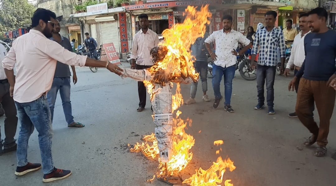 शाहरुख खान मुर्दाबाद इत्यादि नारे लगाते हुए रामनिवास टॉकीज चौक पंहुचे, जहां उन्होंने पुतला दहन किया। शिव सेना के प्रदेश कार्य समिति सदस्य विमल महंत ने कहा कि फ़िल्म में हिंदुत्व के प्रतीक भगवा रंग का अपमान किया गया है जिसे शिव सेना कतई बर्दाश्त नही करेगी। गाने में भगवा रंग का अपमान किया गया है। फ़िल्म से उस गाने को हटाया जाय। वही जिला अध्यक्ष अमित विश्वास ने कहा कि भगवा रंग को जिस तरह से बेशर्म रंग कहा जा रहा है वह सरासर गलत है। शिव सेना फ़िल्म के विरोध के नही है लेकिन भगवा का अपमान करने वाले गाने को फ़िल्म से हटाया जाना चाहिए। यदि गाना बिना हटाये फ़िल्म रिलीज होती है तो किसी भी थियेटर में फ़िल्म चलने नही देंगे। आज के इस कार्यक्रम में उमेश श्रीवास, नगर अध्यक्ष अशोक मेश्राम, सनी साहू, विजय लकड़ा, रिक्की विश्वास, टूरण कौशिक, गेंदराम साहू, लक्ष्मीनारायण उइके, प्रहलाद जैन, राहुल बानी, शैलेष बोरकर, सुमित बानी सहित अन्य शिव सैनिक उपस्थित थे।
