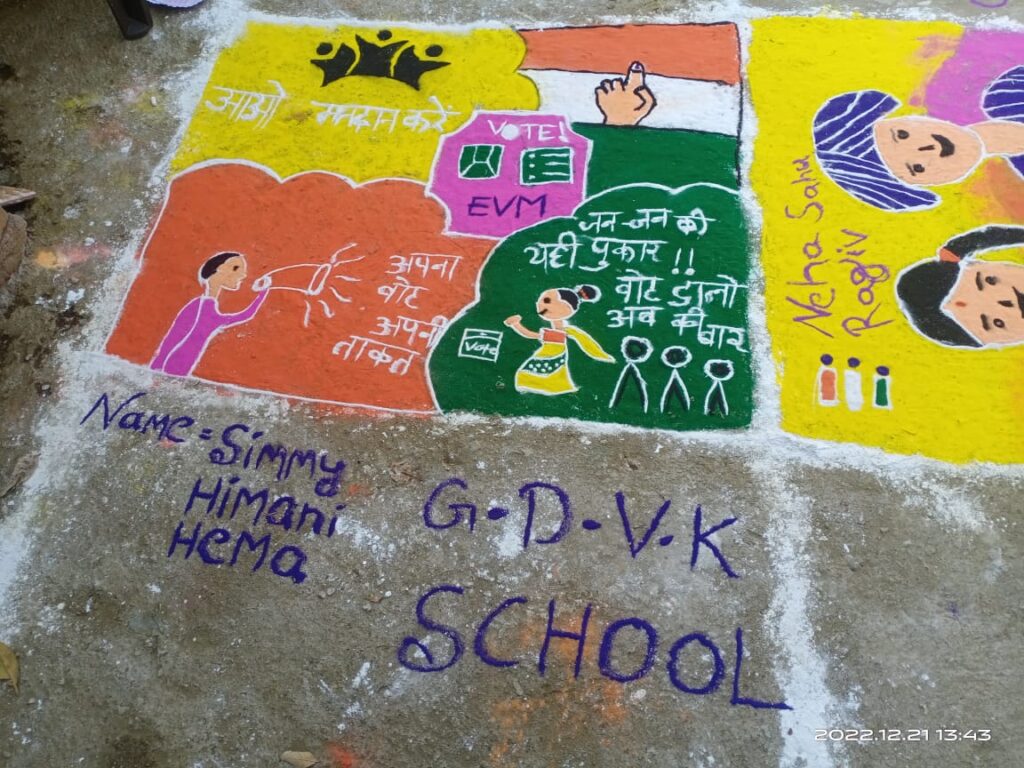 रायगढ़ / वार्ड क्रमांक 27 में – जाबो – मतदाता जगरूकता कार्यक्रम के तहत रंगोली,निबंध,स्लोगन एवं विविध आयोजन आयोजित किये गए जिसे वार्डवासियों स्व सहायता समूह एवं गुरुद्रोण स्कूल के सहयोग से सम्पन्न किया गया निर्वाचन प्रभारी के उपस्थिति में सभी ने निर्भीक होकर प्रजातांत्रिक ब्यवस्था में भागीदारी निभाते हुए नैतिक दायित्व के साथ मतदान के अधिकार का उपयोग करने,तथा 18 वर्ष से अधिक उम्र वालो को मत देने प्रेरित करने शपथ लिया।