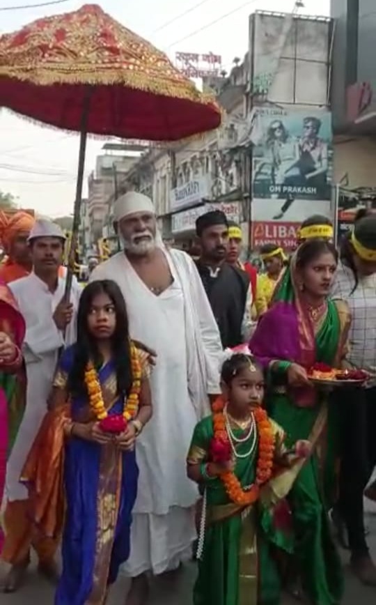 12 जनवरी शहर के सुख समृद्धि के लिए निकली साई पालकी यात्रा उमड़ा भक्तो का जनसमूह बच्चे महिला युवा बुजुर्ग साई के भक्ति में हुए लीन