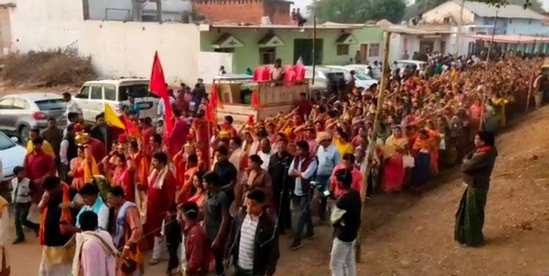 मंदिर प्राण प्रतिष्ठा समारोह कलश यात्रा में आज पांच हजार से भी अधिक तादाद में कलश यात्रा मे महिला शामिल हुए।