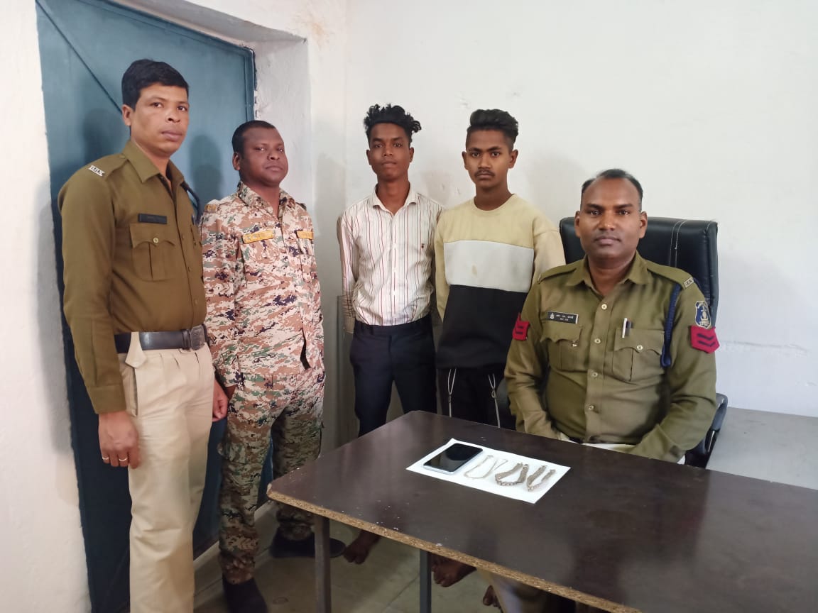 घटना के संबंध में 03 फरवरी को भाटिया कॉलोनी जूटमिल के पास में रहने वाले राजकुमार सिदार पिता की खीकराम सिदार उम्र 25 साल मूल निवास जामपाली थाना सारंगढ़, जिला सारंगढ़-बिलाईगढ़ रिपोर्ट दर्ज कराया कि उसके घर 15-16 जनवरी की रात घर अज्ञात चोर घर अंदर घुसकर बिस्तर में रखा एक मोबाइल विवो कंपनी का और एक बैग जिसमें रखे चांदी का चैन, चांदी का 2 जोड़ पायल कीमती करीब ₹8000 को चोरी कर ले गया था, खोजबीन के बाद भी कहीं पता नहीं चला, अज्ञात चोर के विरुद्ध थाना जूटमिल में *अप.क्र. 18/2023 धारा 457,380 IPC* दर्ज कर मुखबिर सूचना पर आज क्षेत्र के दो अपचारी बालक और दो युवक उमेश चौहान (19 साल) और तरुण कुमार उर्फ बाबू सिदार (19 साल) को हिरासत में लिया गया । आरोपी युवकों ने बताया कि 15 जनवरी के रात चारों एक साथ दर्री तालाब के पास घूम रहे थे, भाटिया कॉलोनी ट्रांसपोर्ट नगर के पास एक सुनसान मकान दिखाई दिया । तब चारों मिलकर चोरी के इरादे से मकान अंदर घुसे और मकान अंदर से एक विवो का मोबाइल, चांदी के 2 जोड़ पायल एक चैन चोरी कर लिए । चोरी के सामान को आपस में बांटे । जूटमिल पुलिस ने आरोपी उमेश चौहान से एक जोड़ चांदी का पायल, आरोपी तरुण सिदार से चांदी का चैन तथा दो अपचारी बालकों से एक मोबाइल सेट और एक जोड़ पायल बरामद किया गया है । आरोपी दोनों युवक और दोनों विधि के साथ संघर्षरत बालकों को नकबजनी के अपराध में गिरफ्तार कर आज न्यायिक रिमांड पर भेजा गया है । थाना प्रभारी जूटमिल उप निरीक्षक कमल किशोर पटेल के नेतृत्व में कार्यवाही में प्रधान आरक्षक बनारसी सिदार, आरक्षक प्रदीप तिग्गा, संतोष एक्का एवं हमराह स्टाफ की सराहनीय भूमिका रही है ।